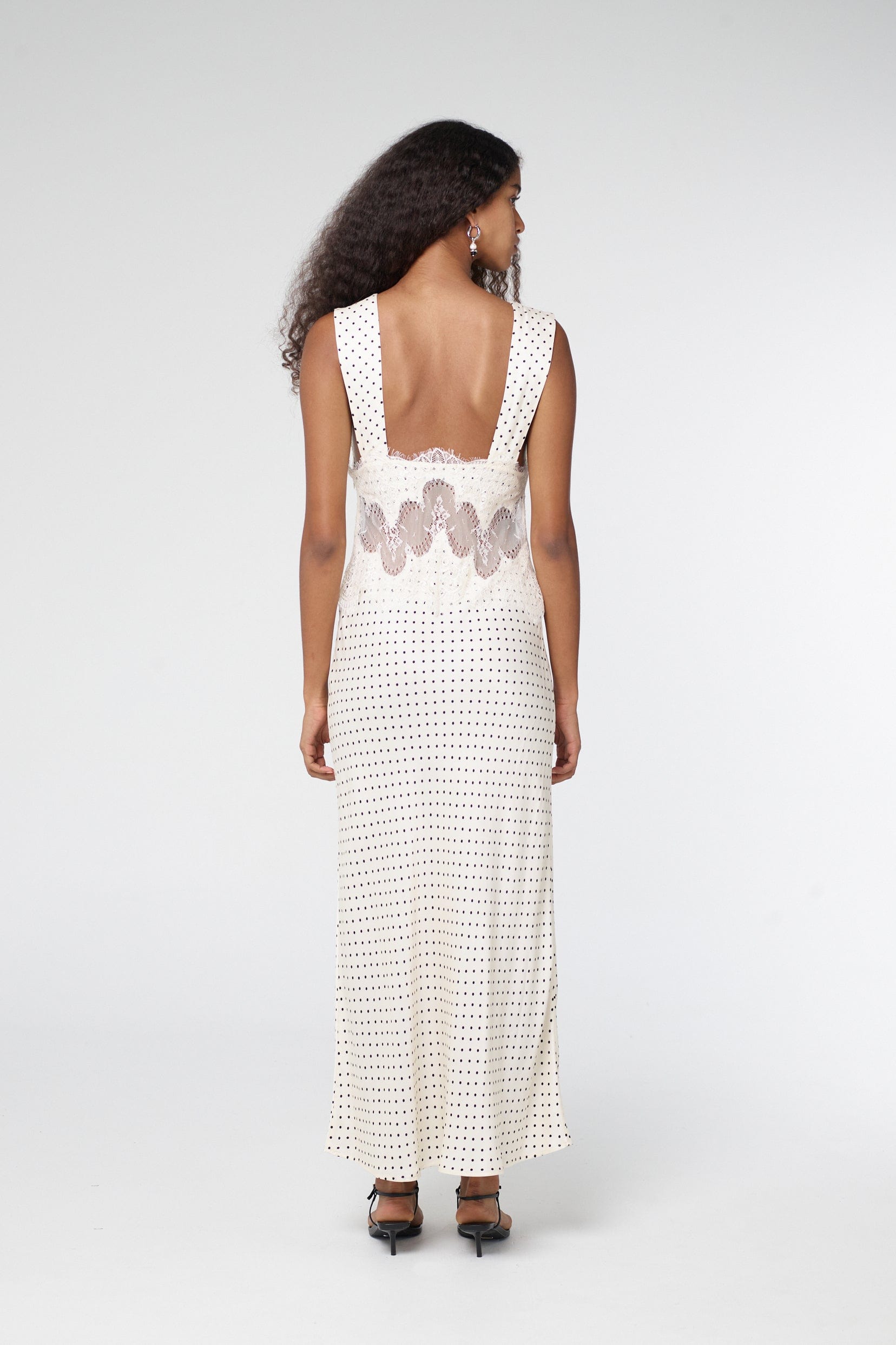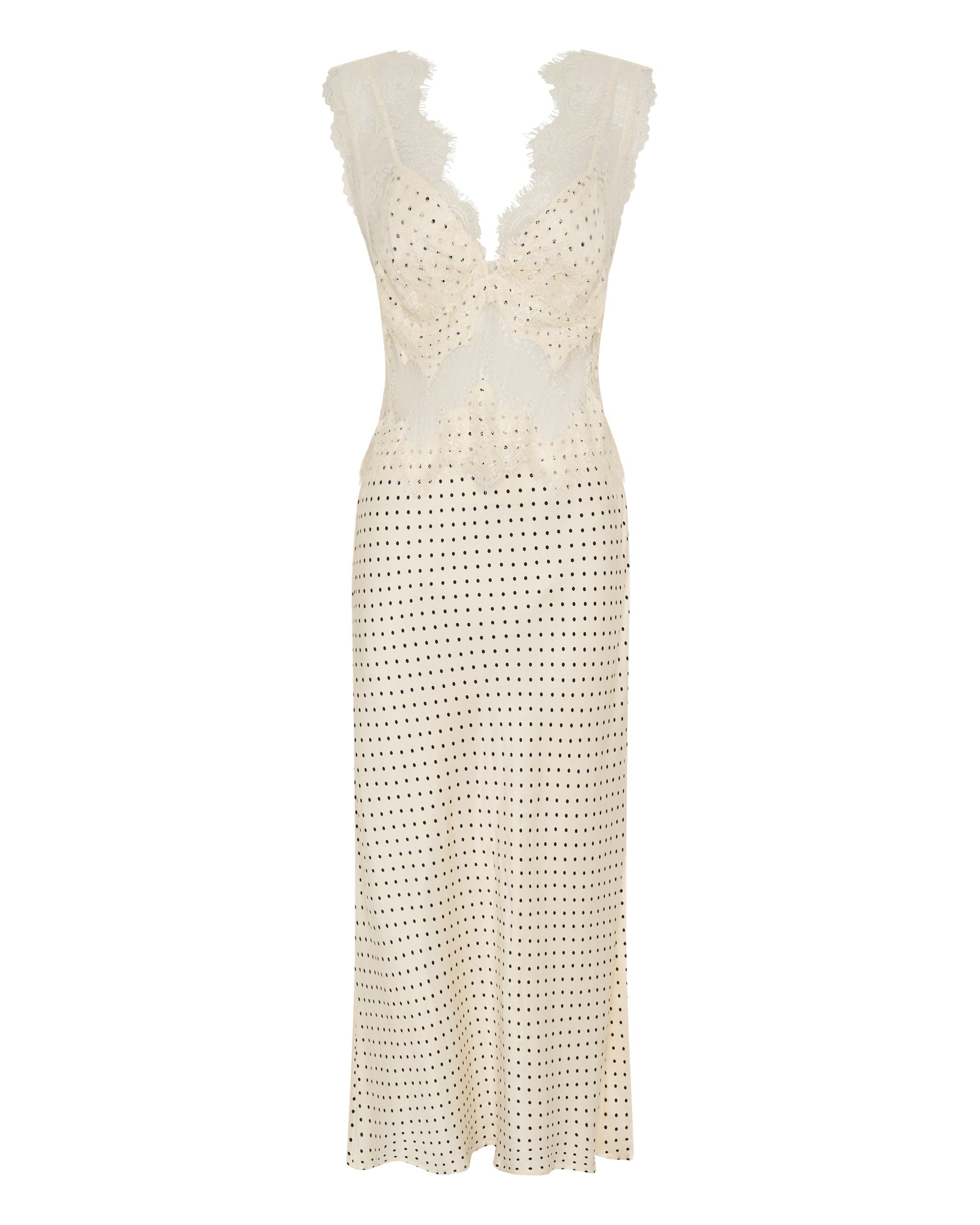 VISIONS LACE DEEP V MAXI DRESS | CREAM POLKA DOT