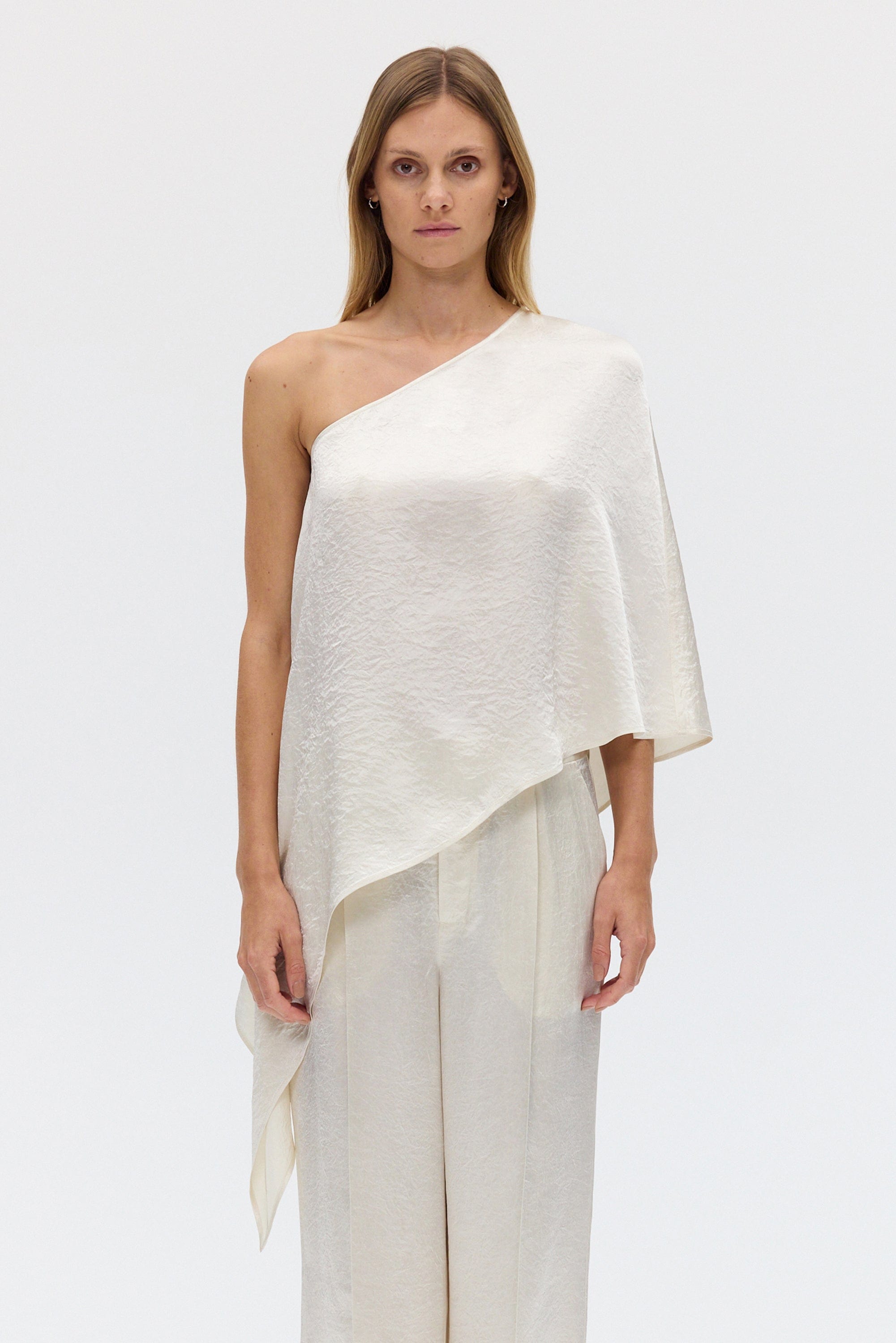 • CRUSH ONE SHOULDER CAPE | CREAM