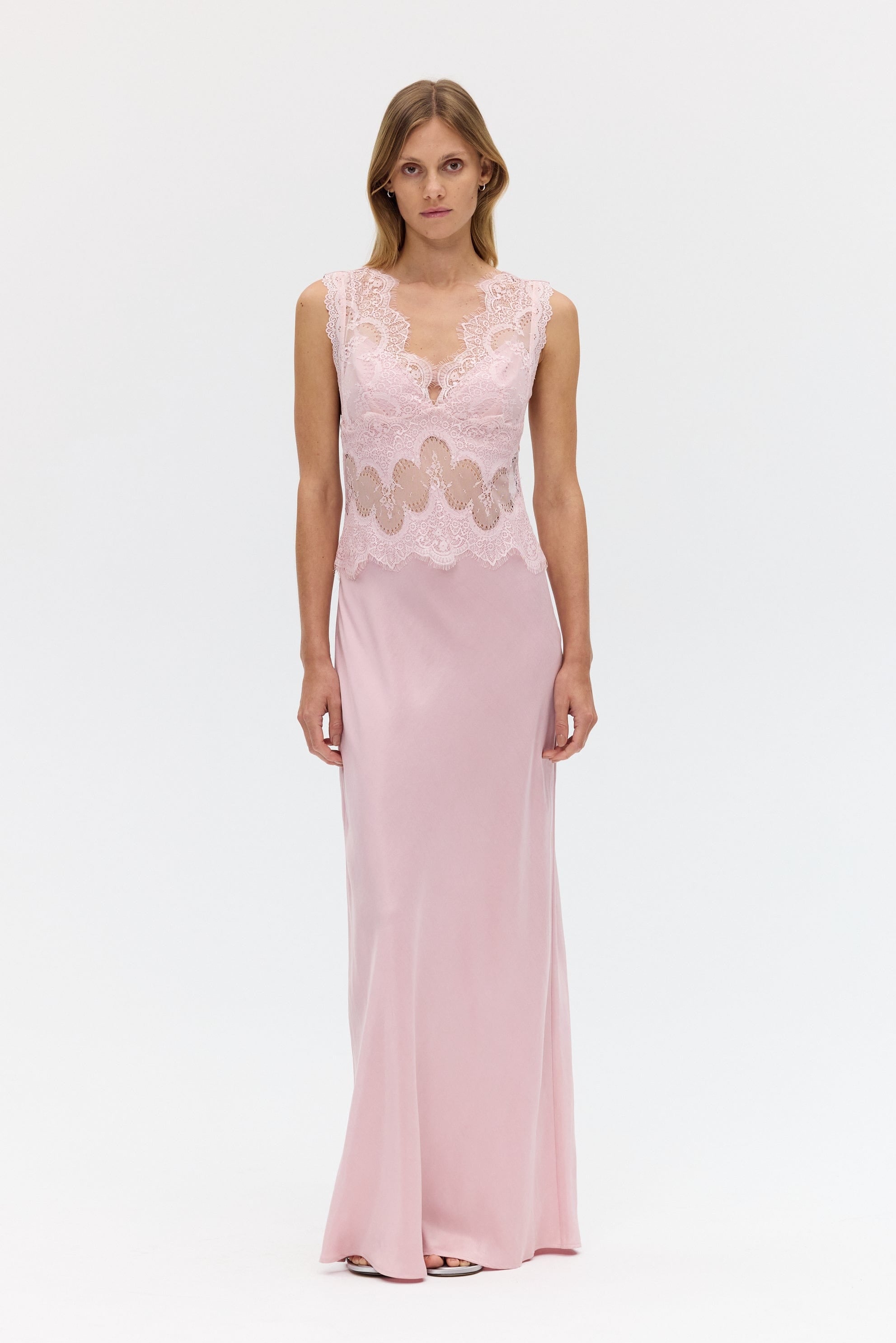 • VISIONS LACE FLOOR LENGTH DRESS | ROSÉ