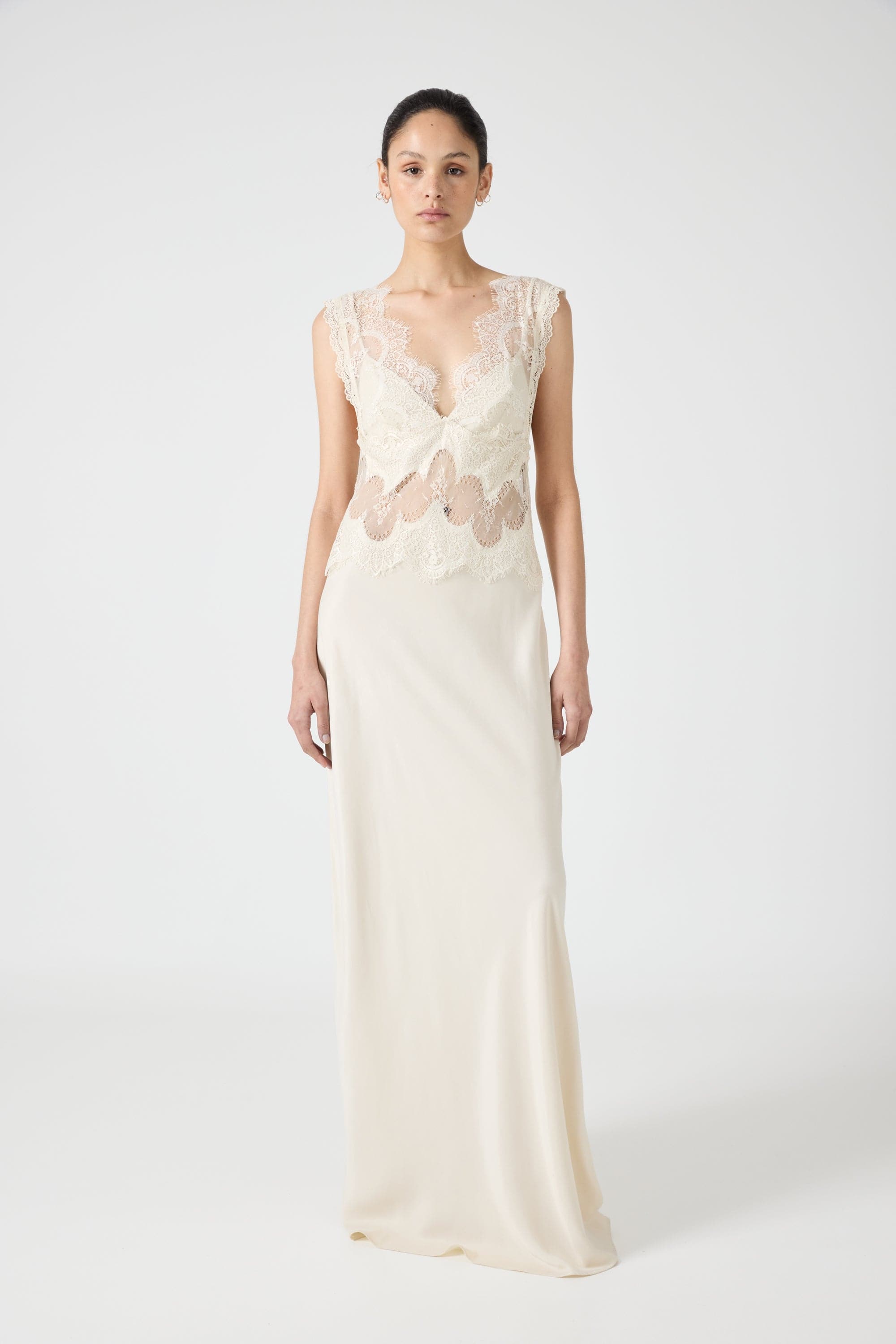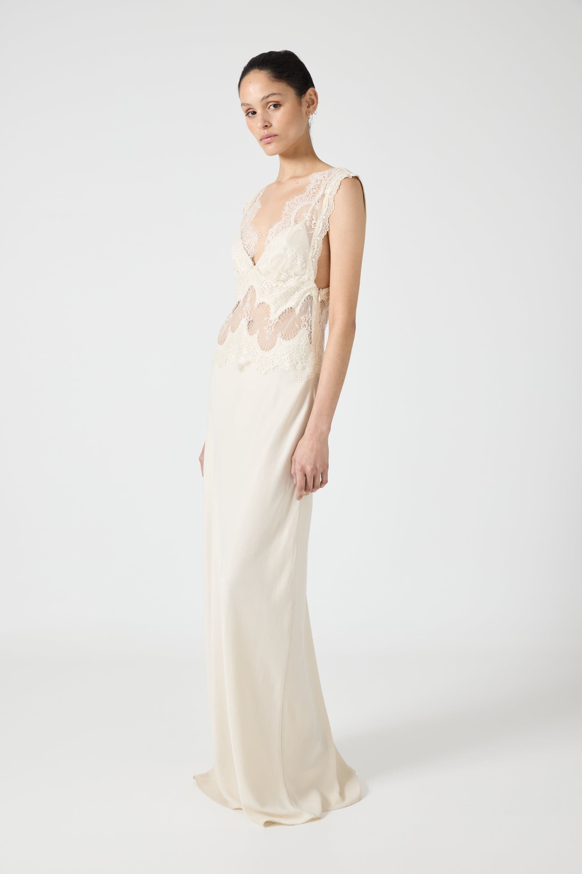 VISIONS LACE FLOOR LENGTH DRESS | BUTTERCREAM