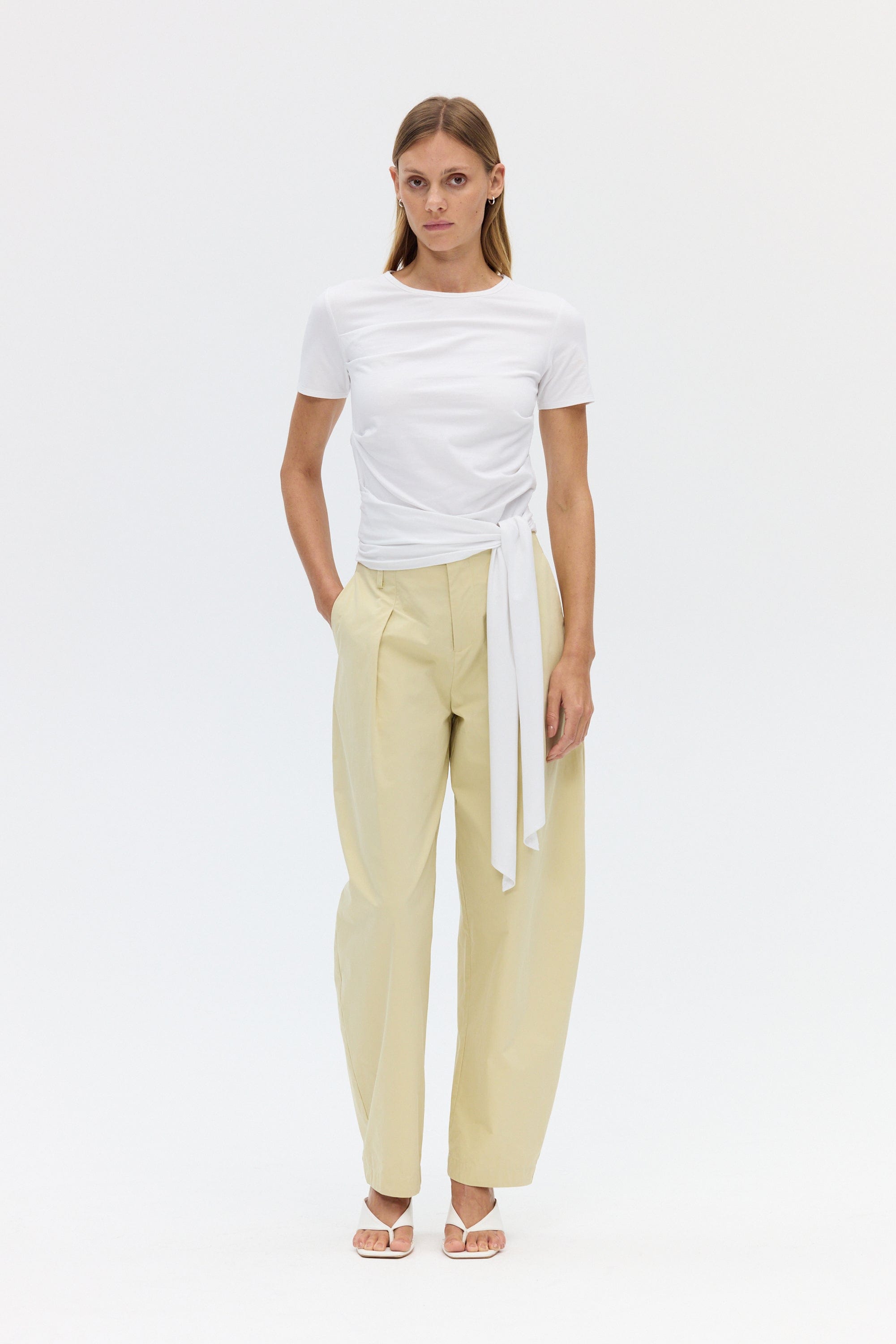The Imprint Tailored Cotton Trouser offers a modern take on relaxed tailoring. Cut to a barrel leg silhouette, it features soft tucks through the front that create shape and volume through the leg. Side pockets add function, while the crisp cotton fabrication grounds the look with a clean, structured finish. A refined essential for everyday wear.