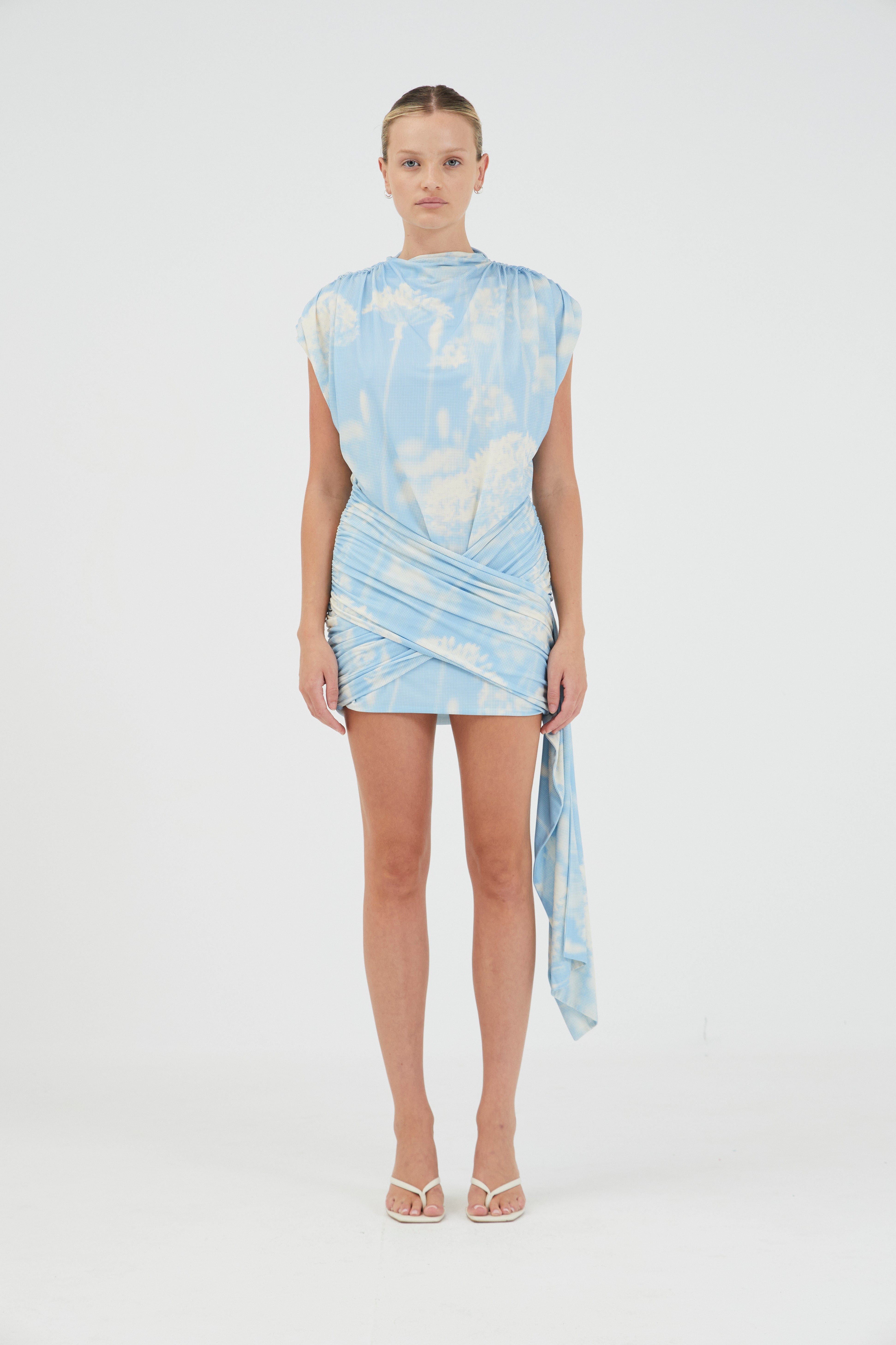 • AURA DRAPED MINI DRESS | FLORAL ILLUSION