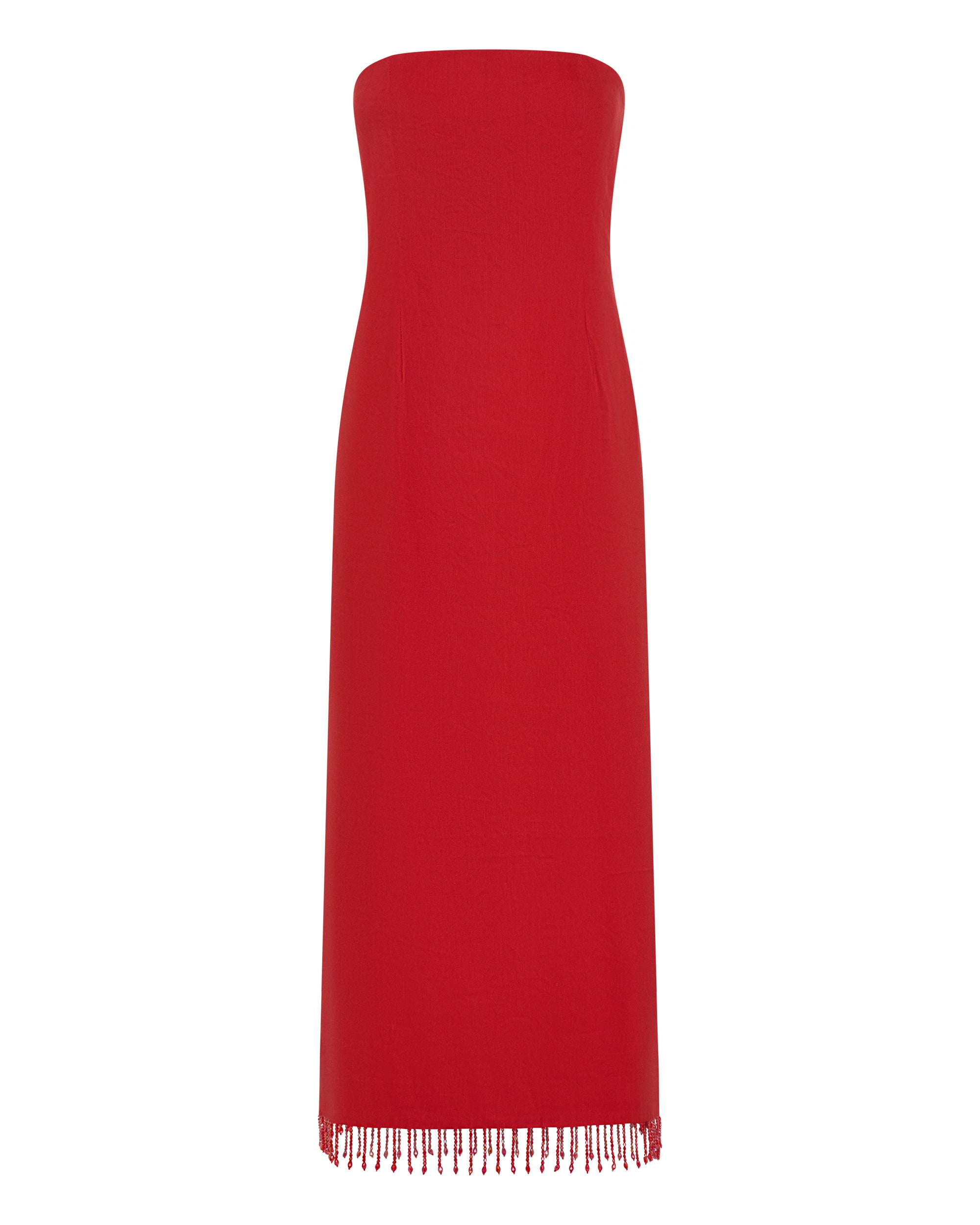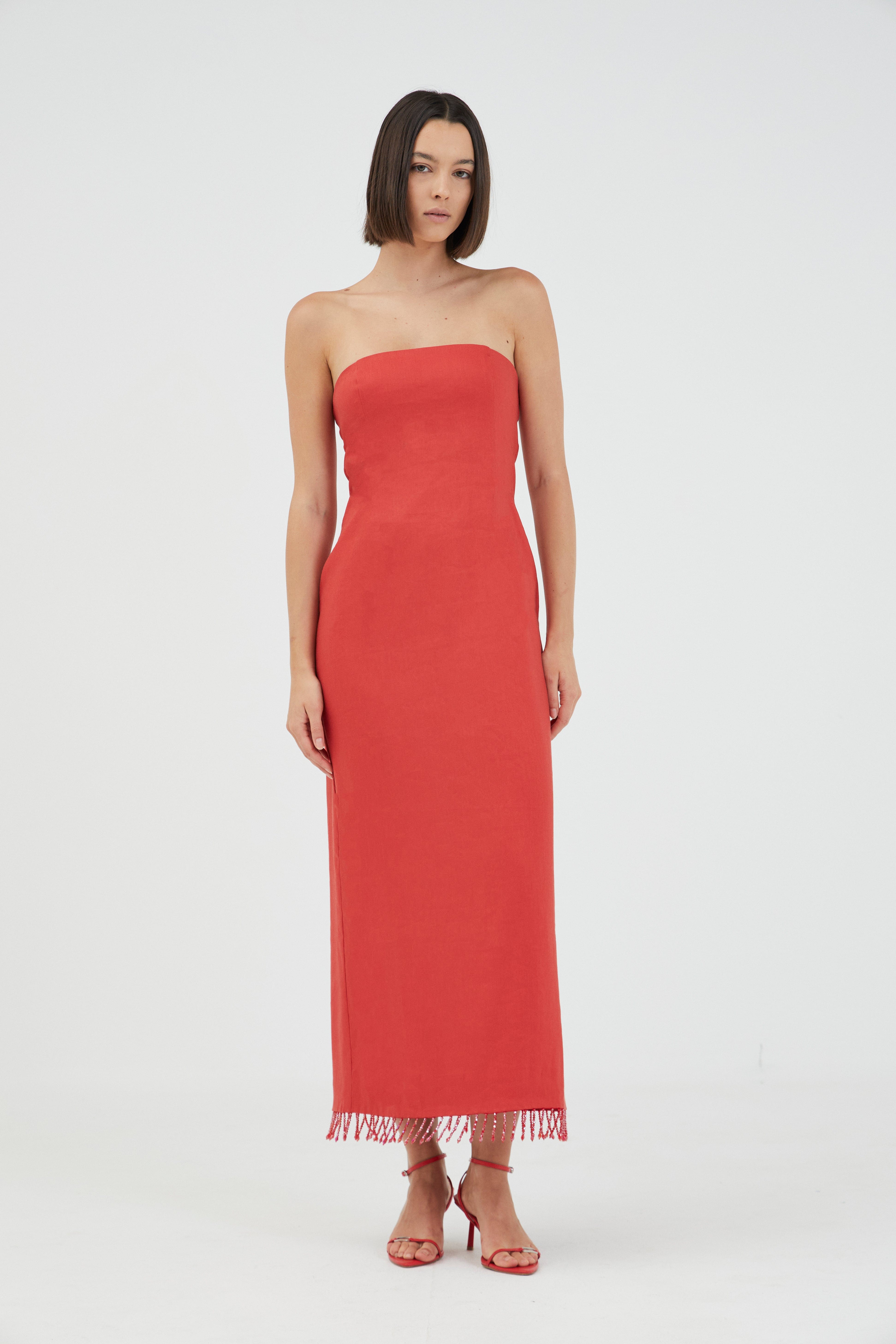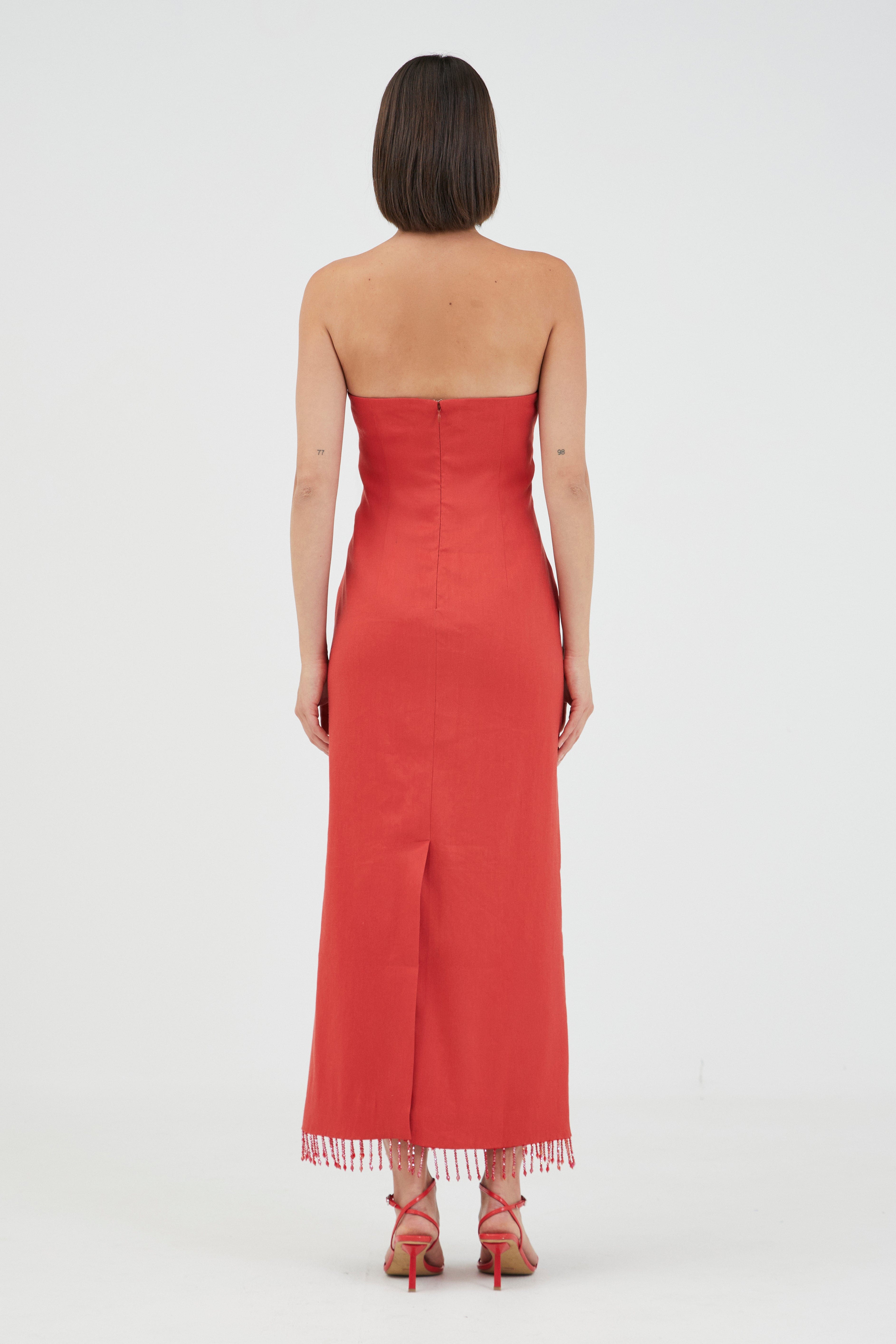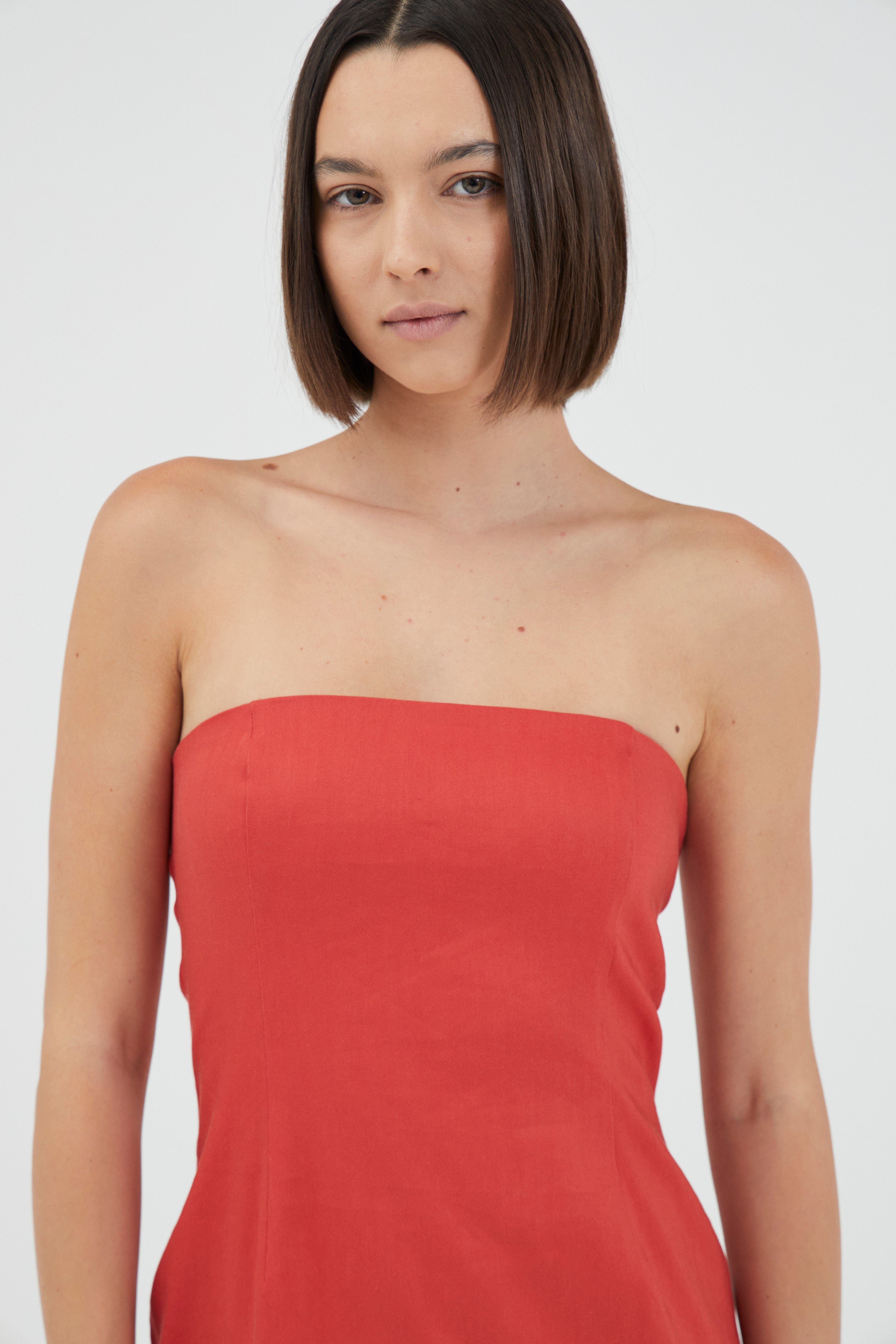 FLAME LINEN STRAPLESS DRESS | GRENADINE