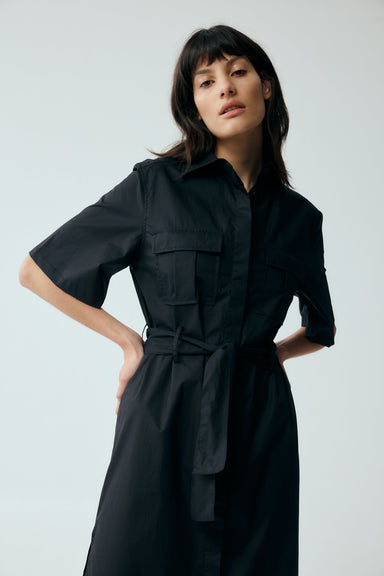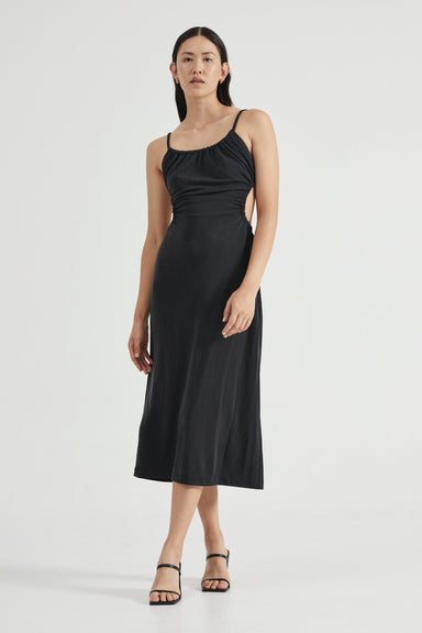 • PULL IN MIDI DRESS | BLACK