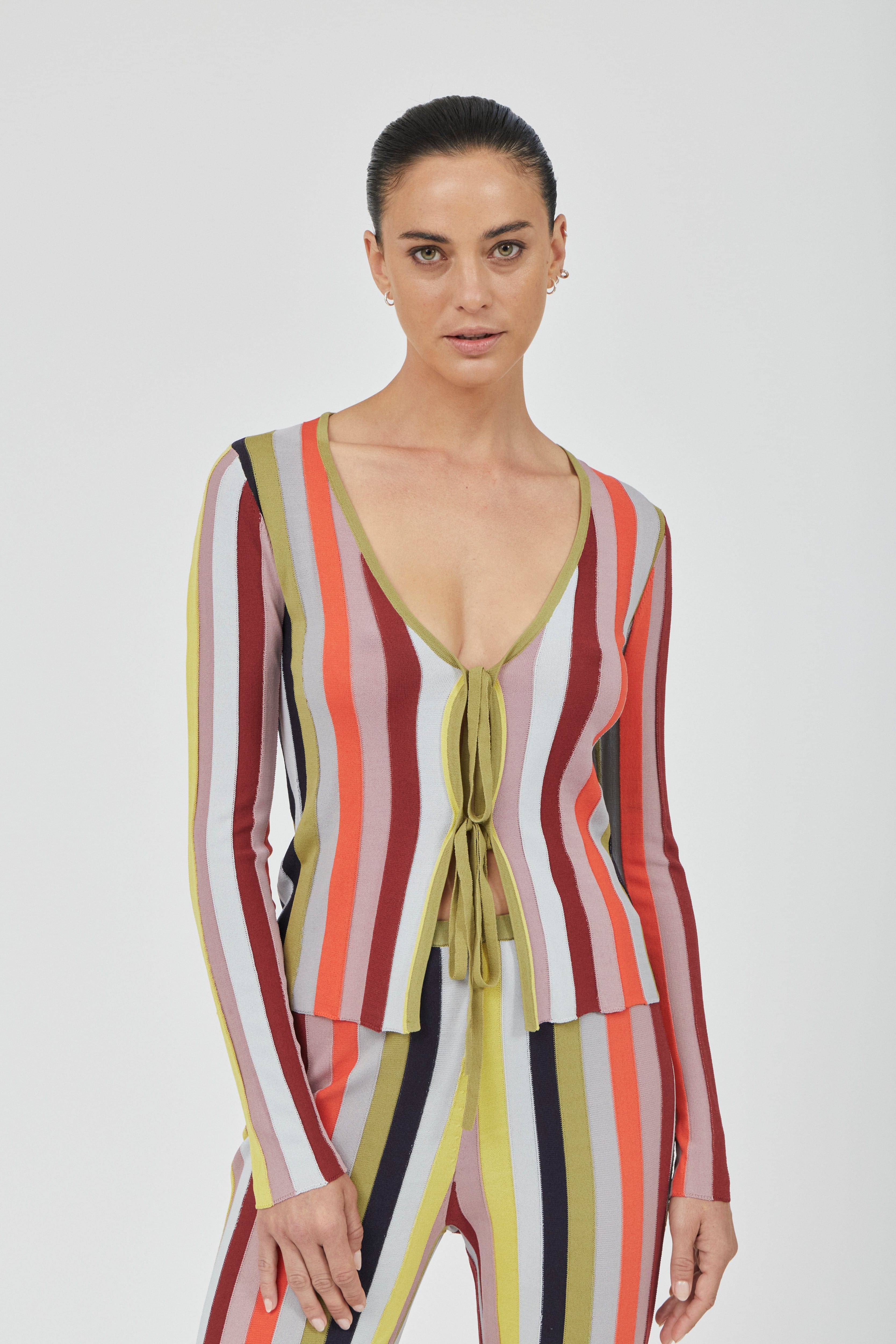 • RHYTHM KNIT TIE CARDIGAN | MIRAGE STRIPE