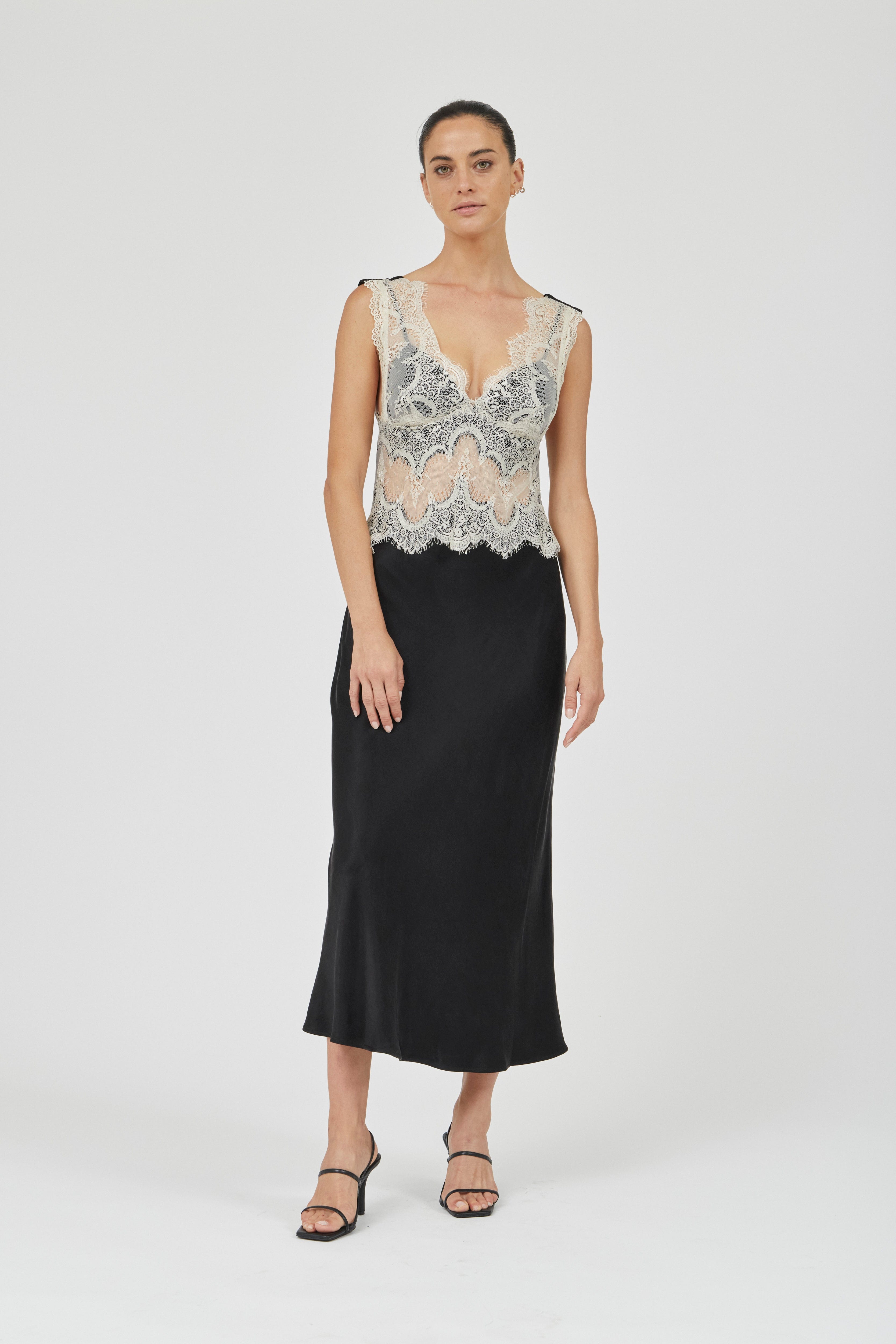 • VISIONS LACE DEEP V MAXI DRESS | BUTTERCREAM & BLACK