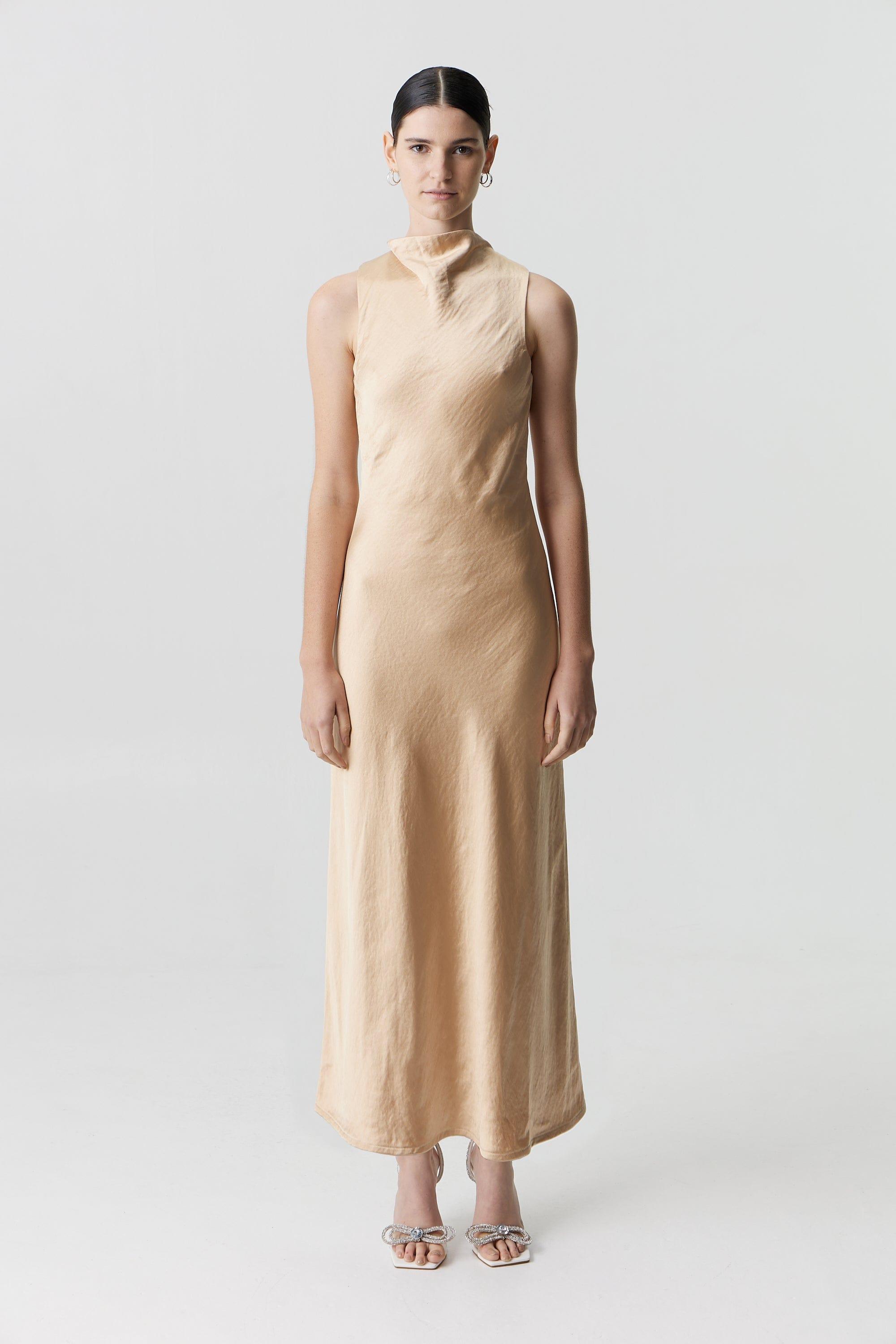 • SATIN BIAS COWL BACK MAXI | SAND