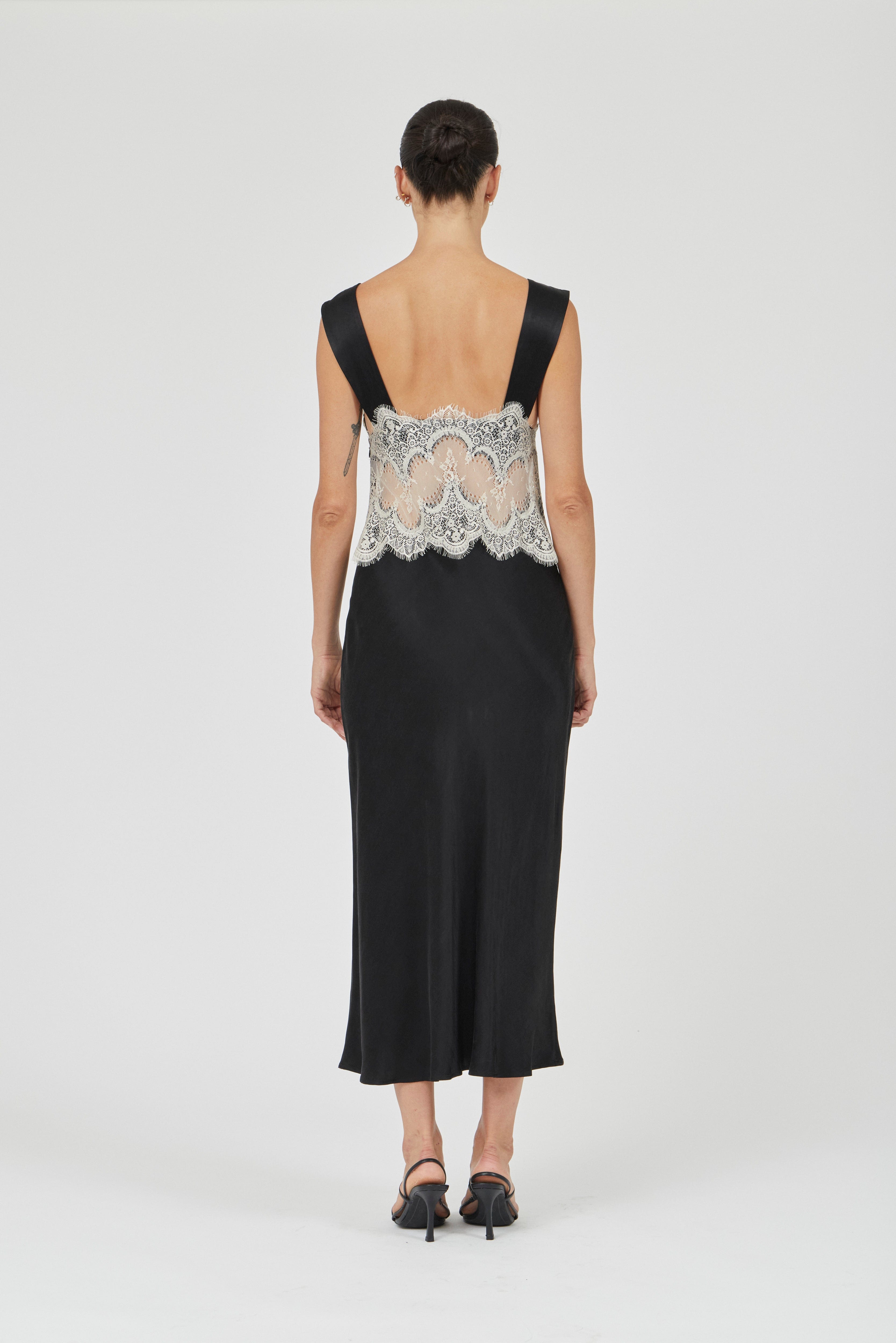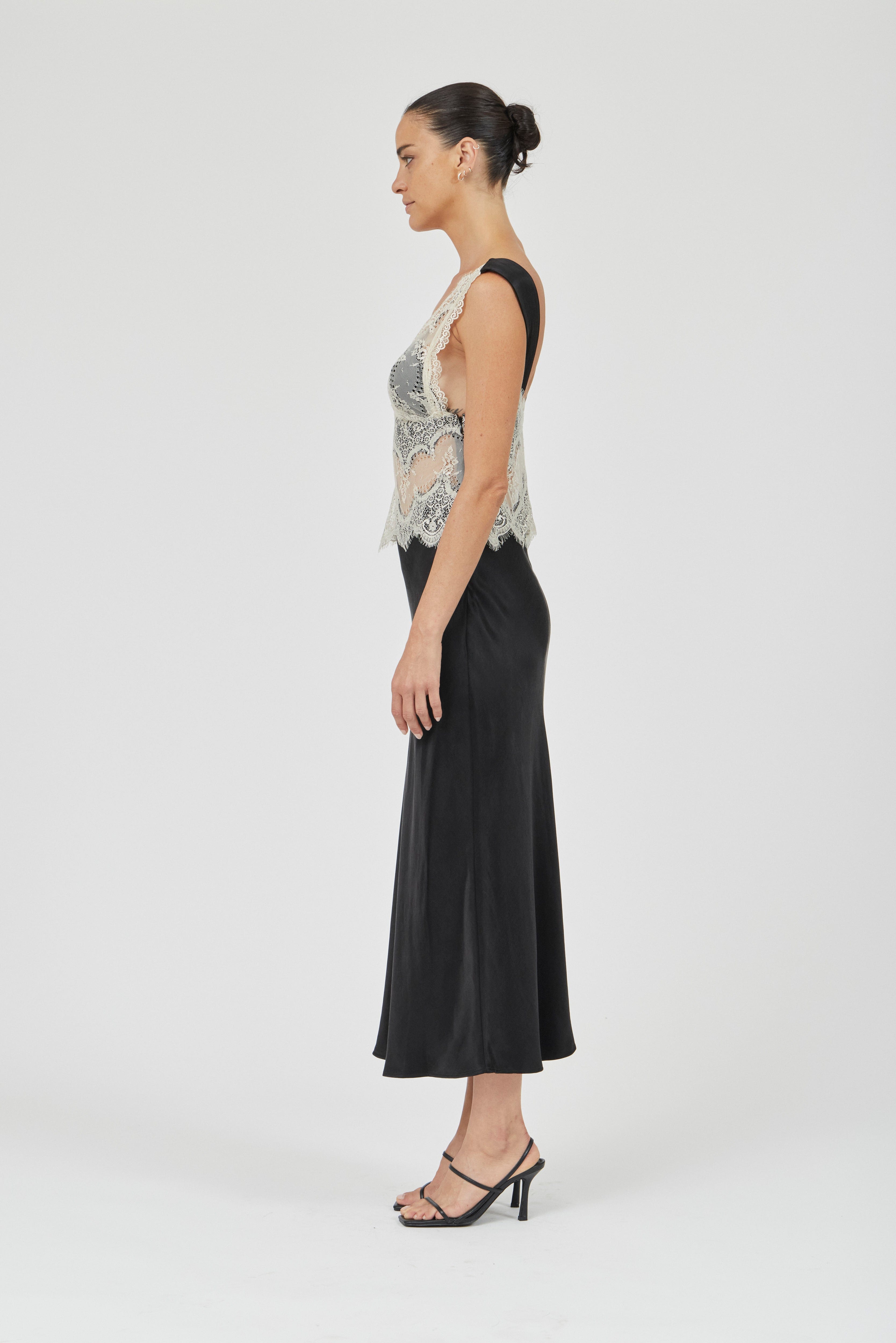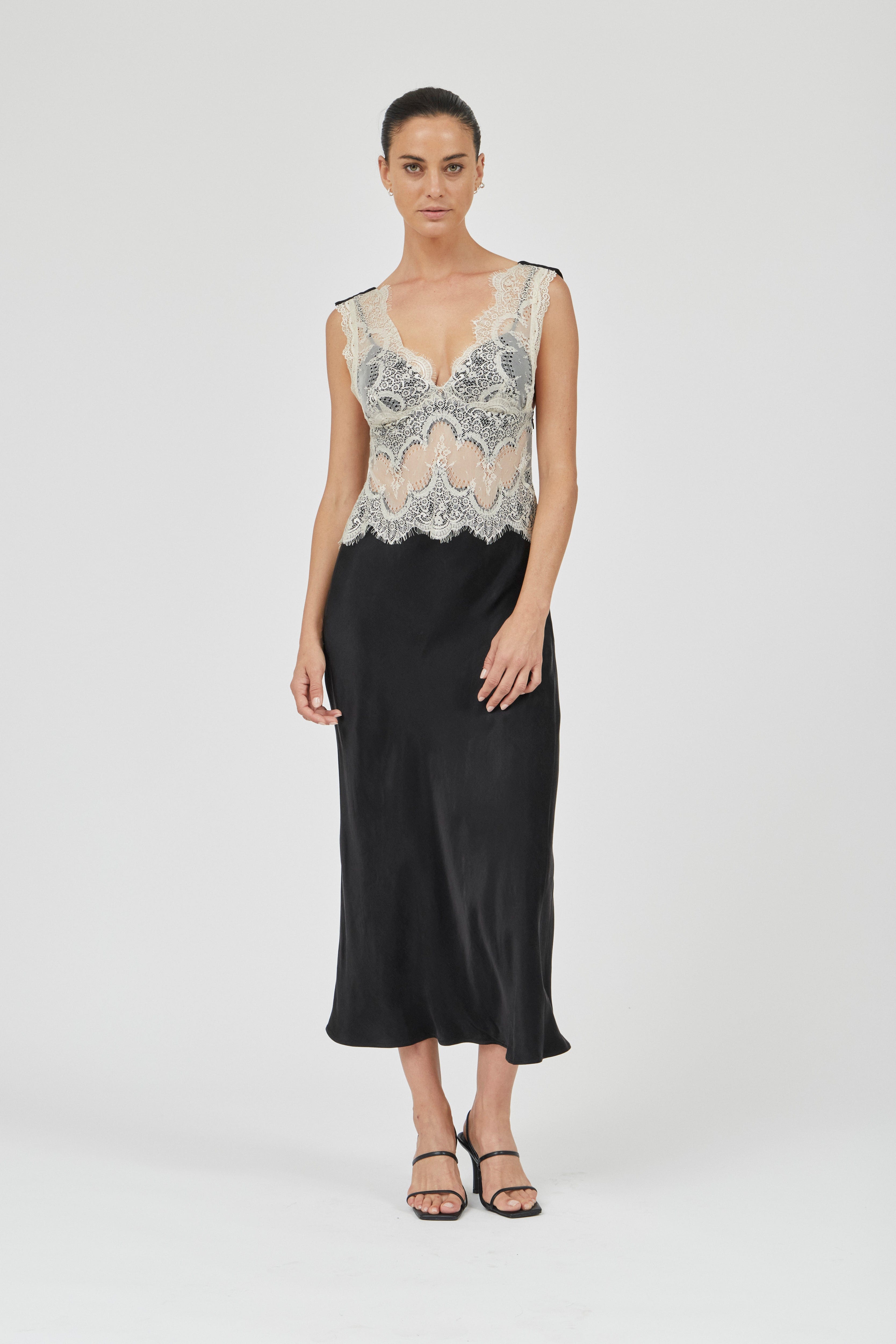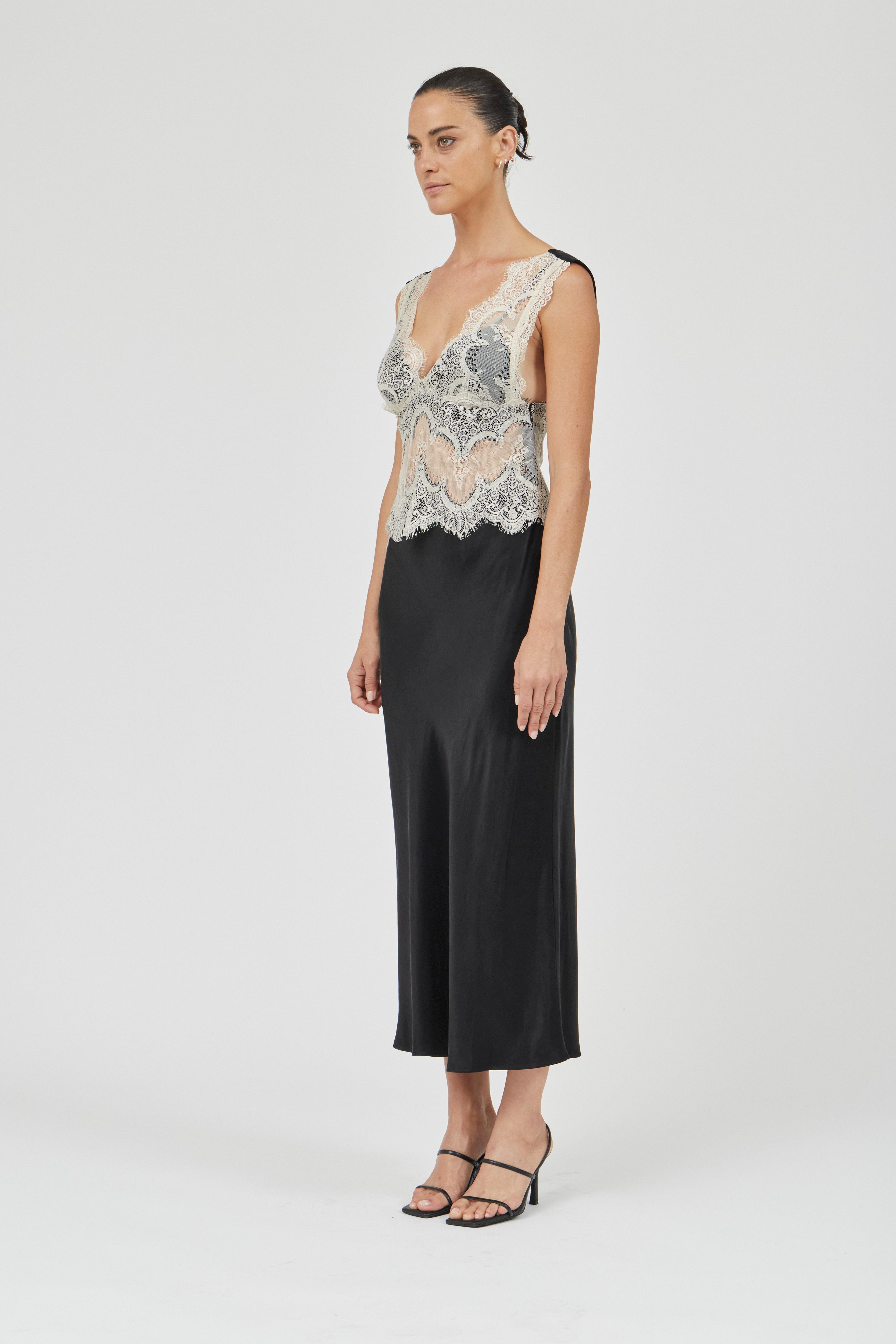VISIONS LACE DEEP V MAXI DRESS | BUTTERCREAM & BLACK