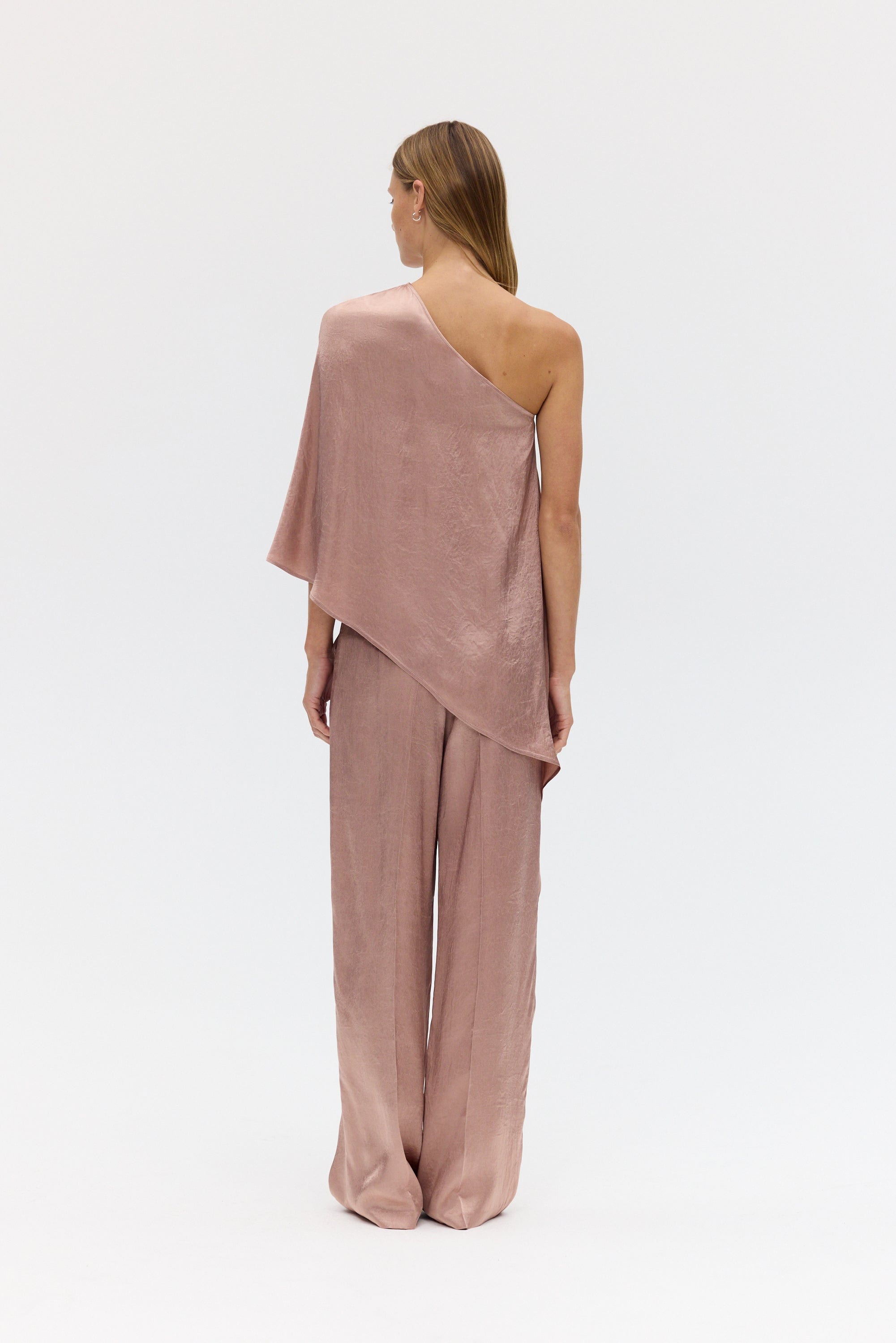 The Crush One-Shoulder Cape is a relaxed take on elevated dressing. Designed with a fluid drape, the asymmetric silhouette falls effortlessly from one shoulder to an elongated hemline. Crafted in 100% sustainable acetate, this cape top offers ease of wear with a striking, modern edge.