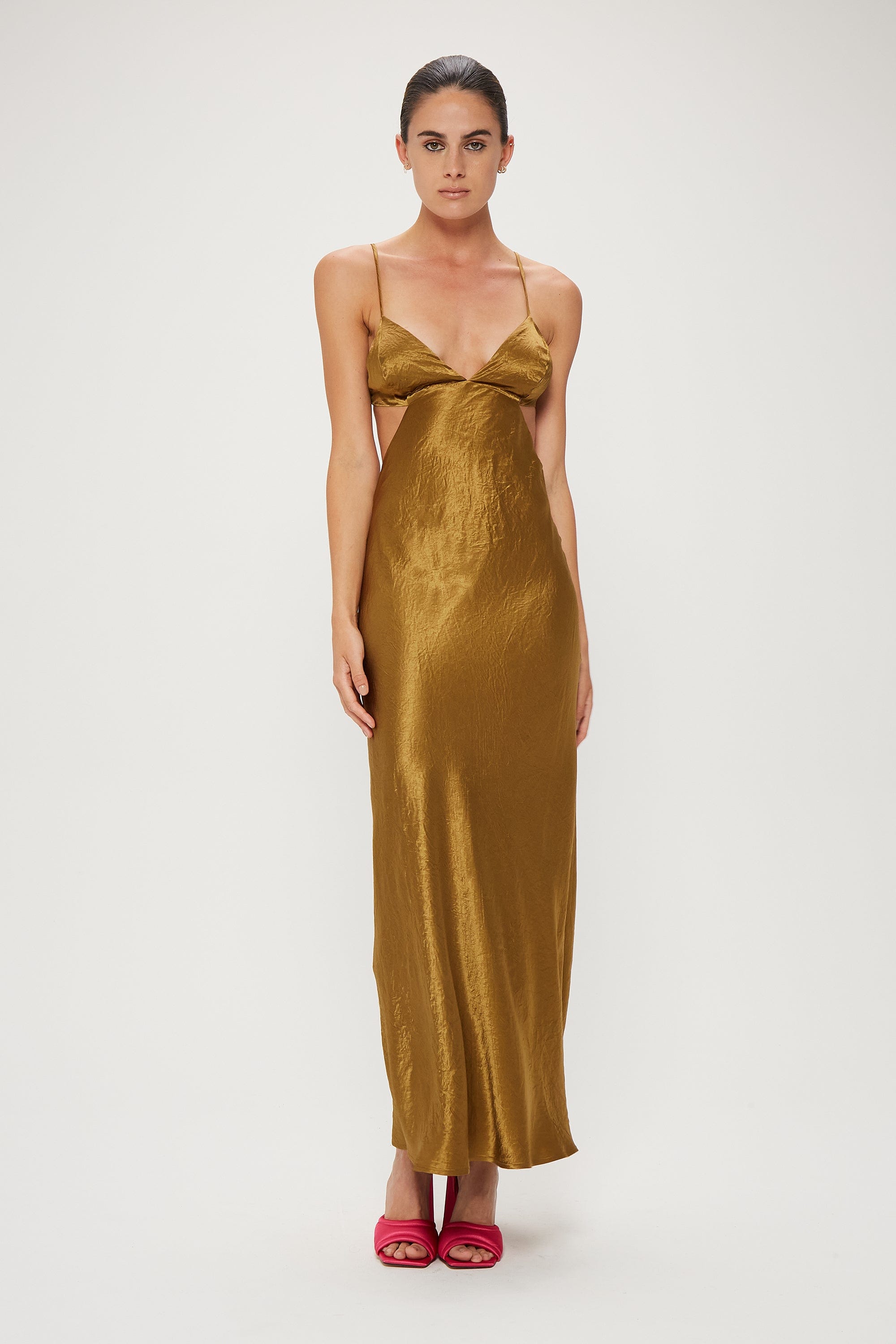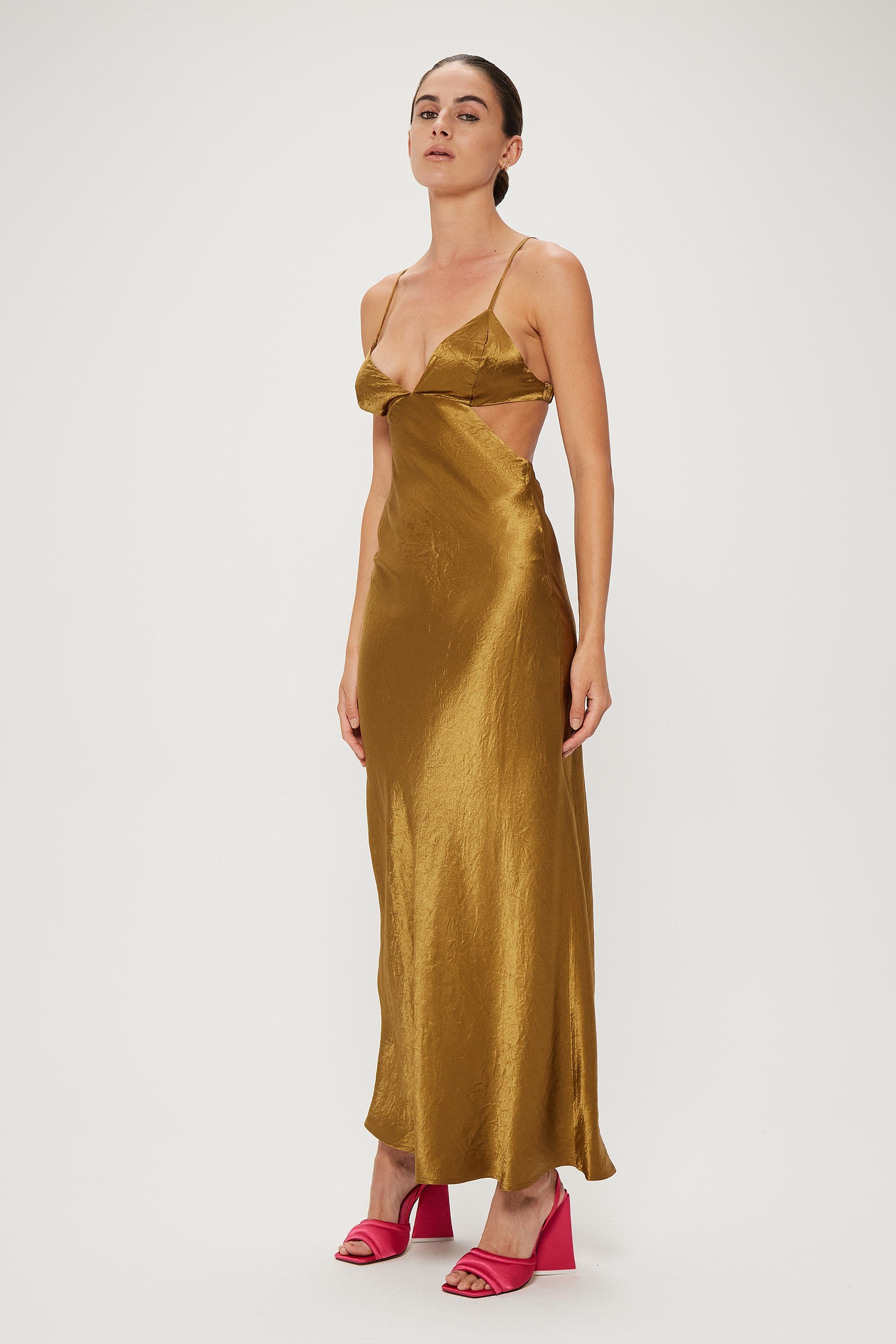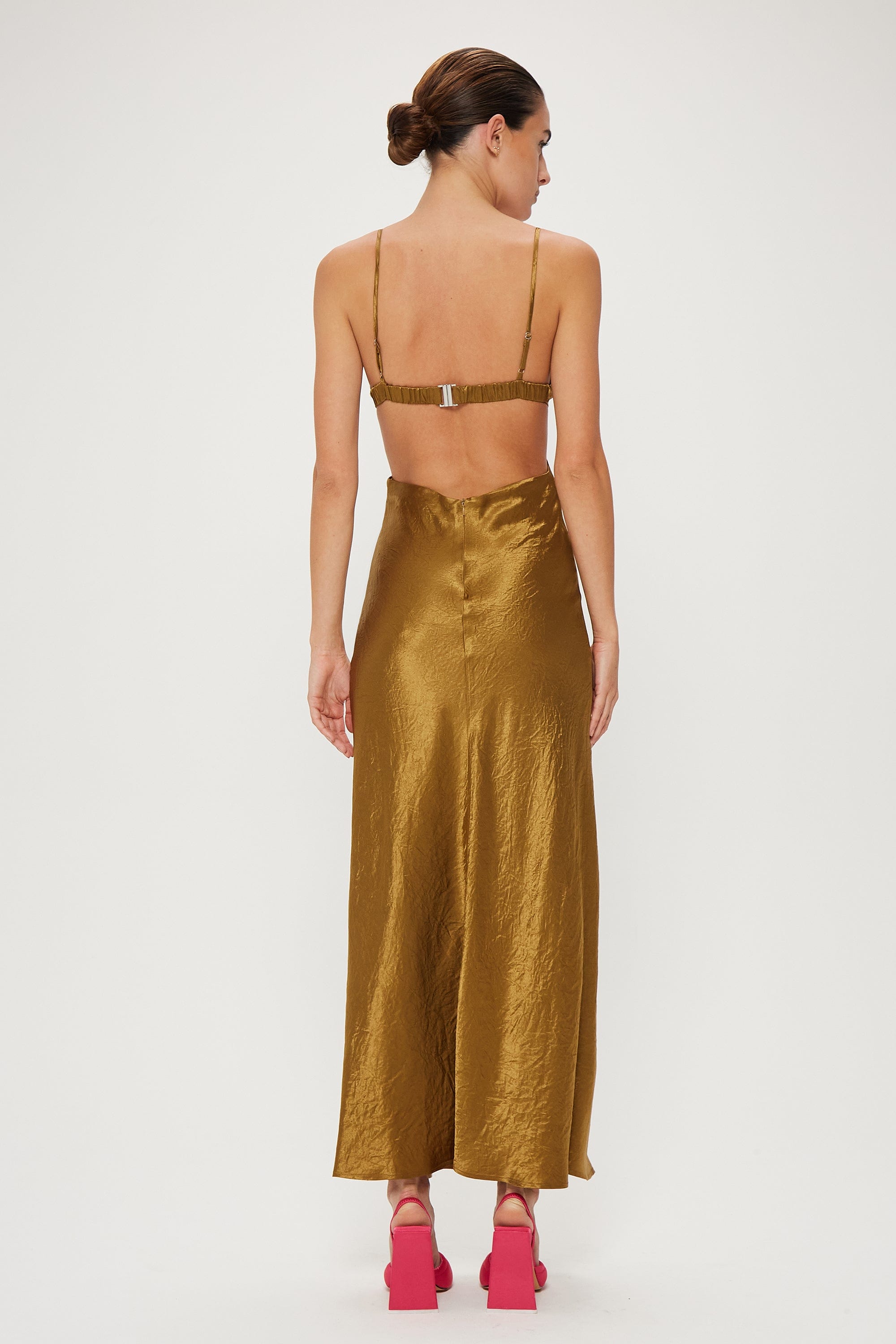 CRUSH BIAS TRI MIDI DRESS | BRONZE