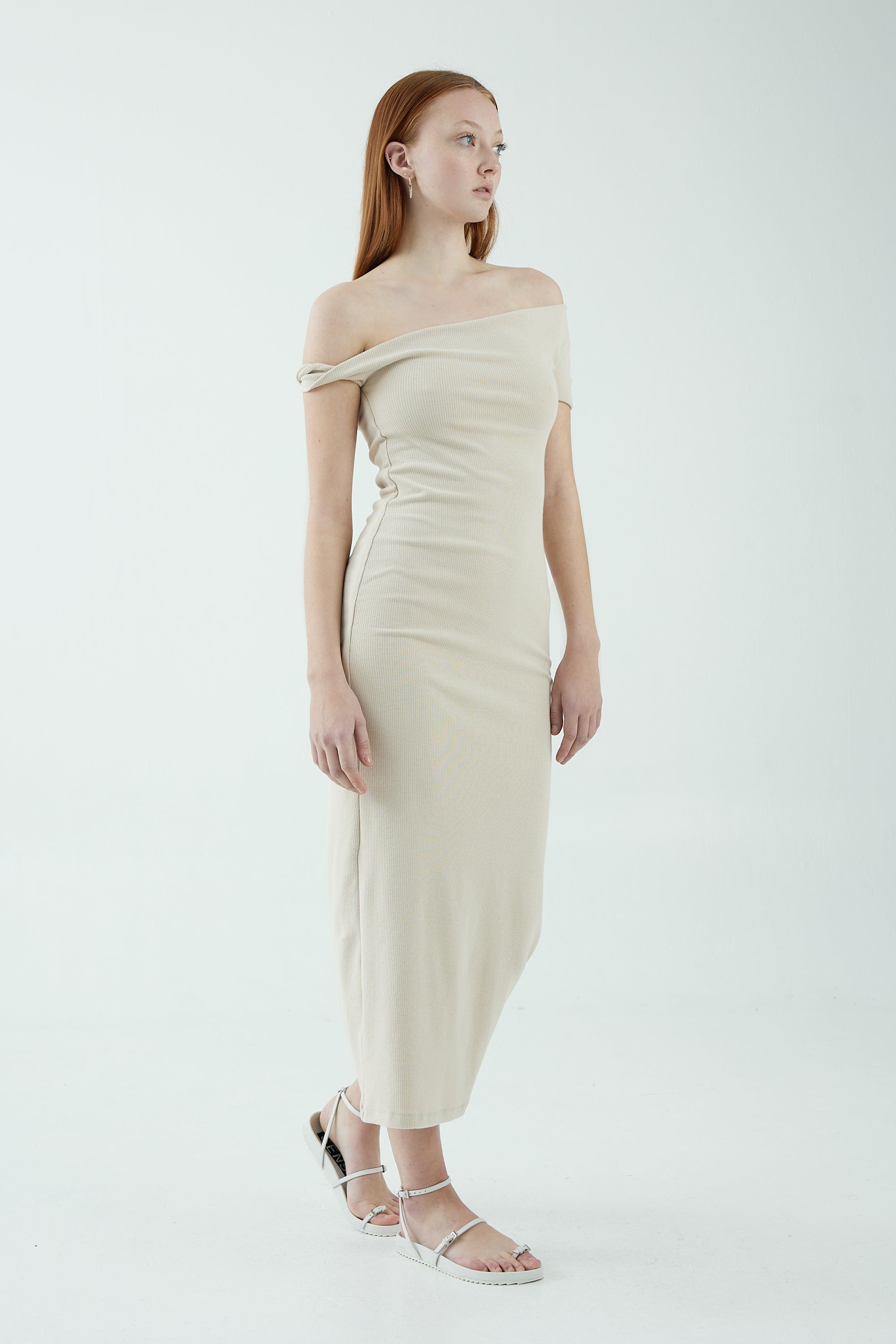 INTERTWINED OFF SHOULDER DRESS | BONE