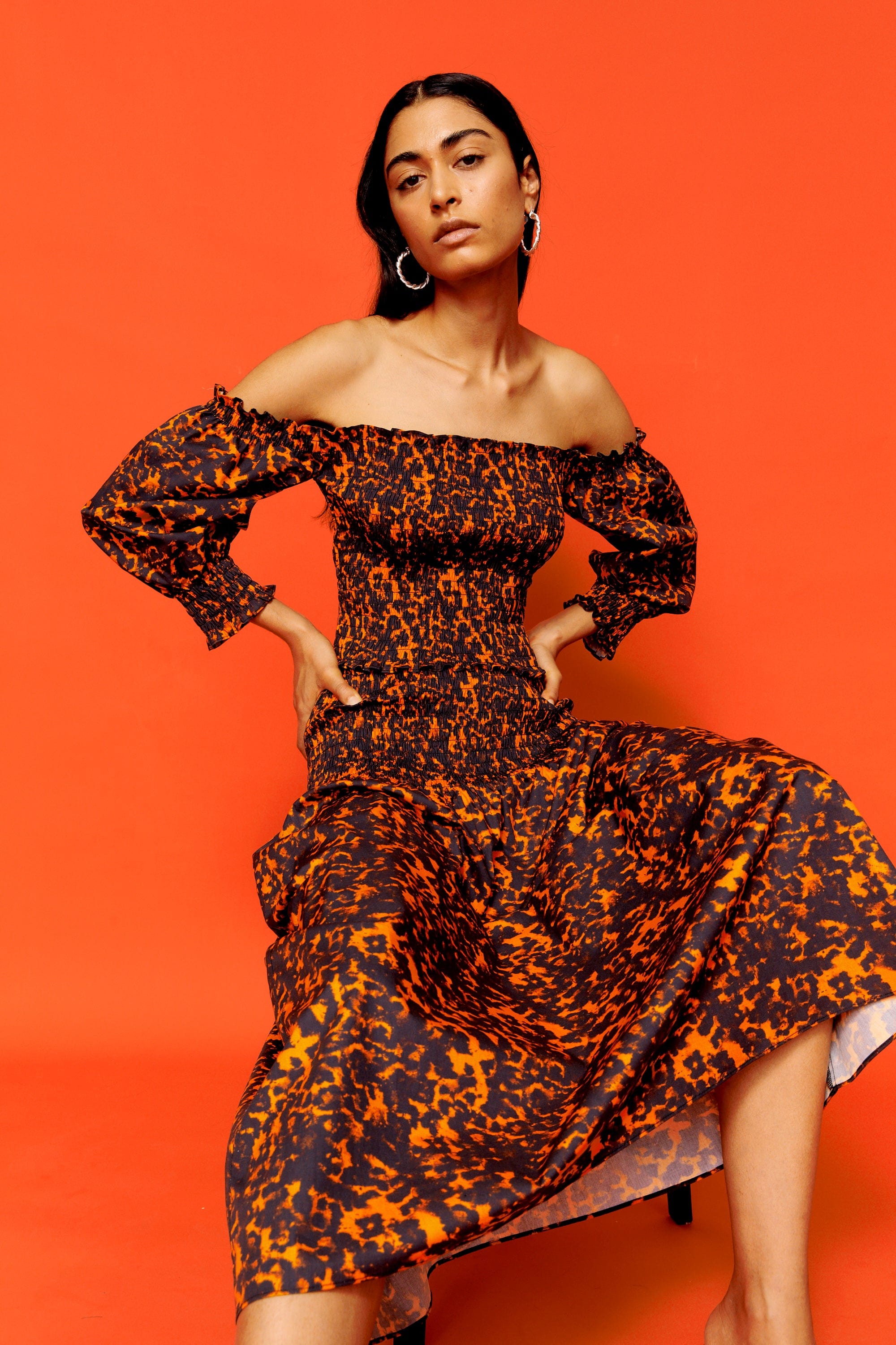 BLUR OUT OFF SHOULDER TOP | ORANGE BLUR