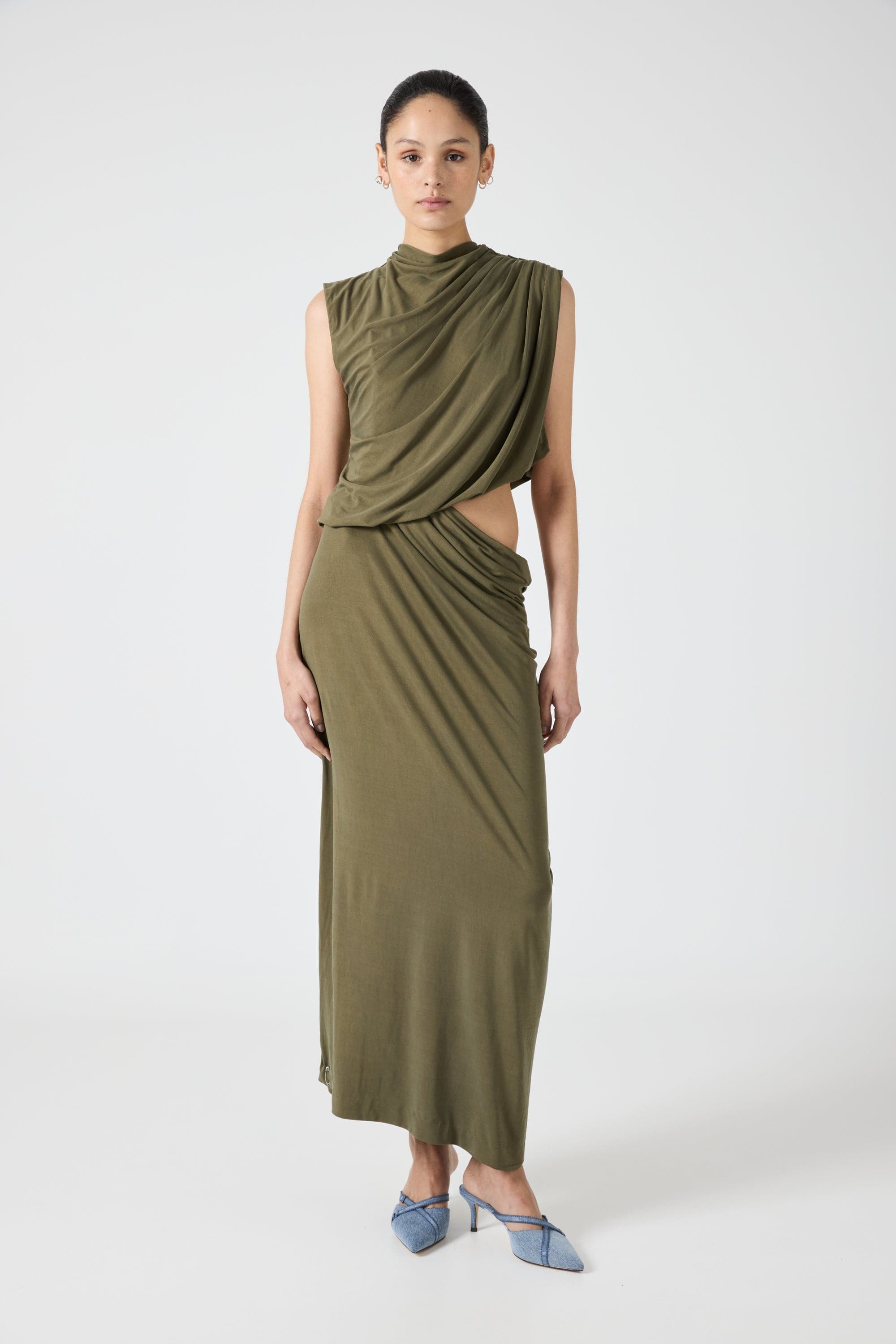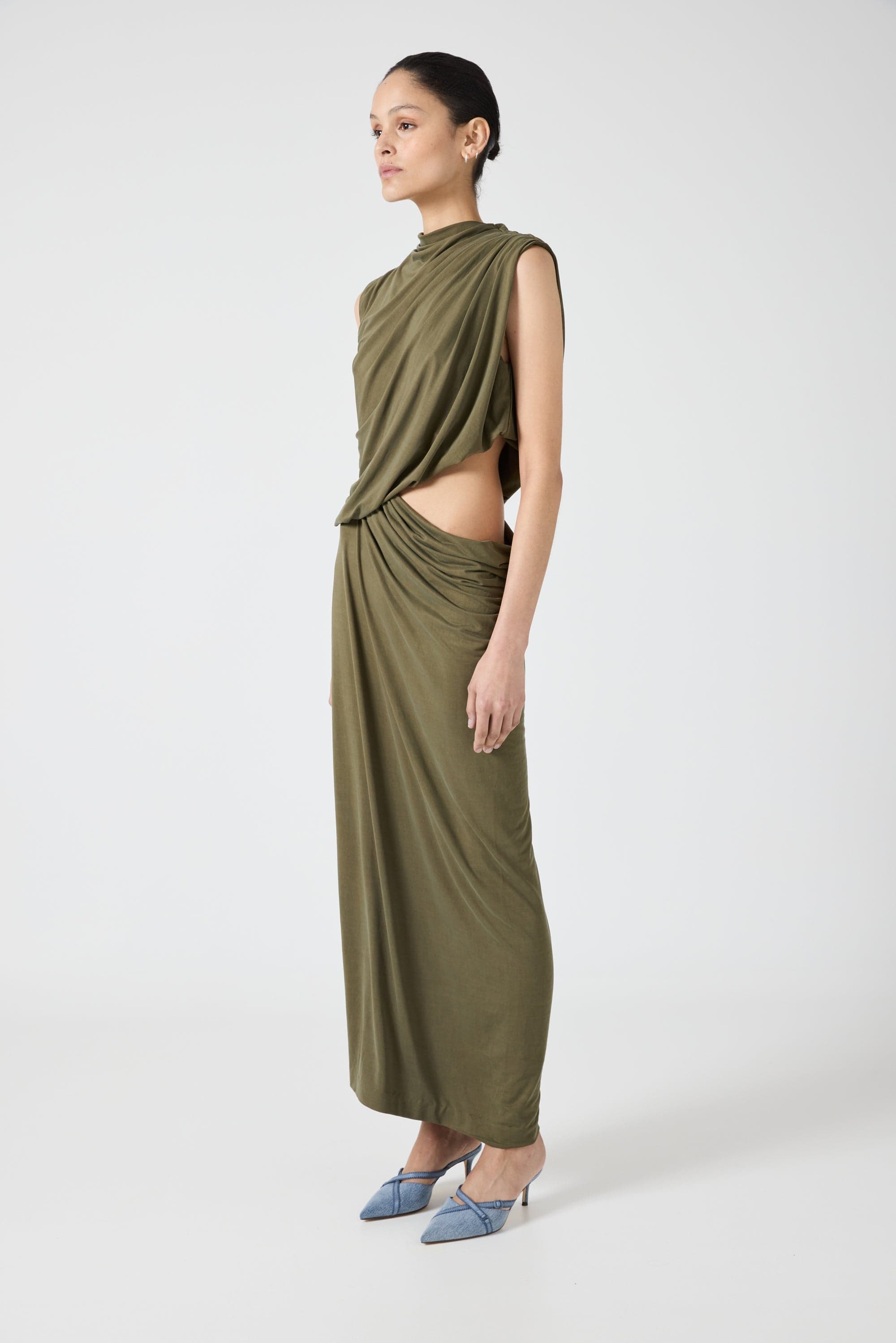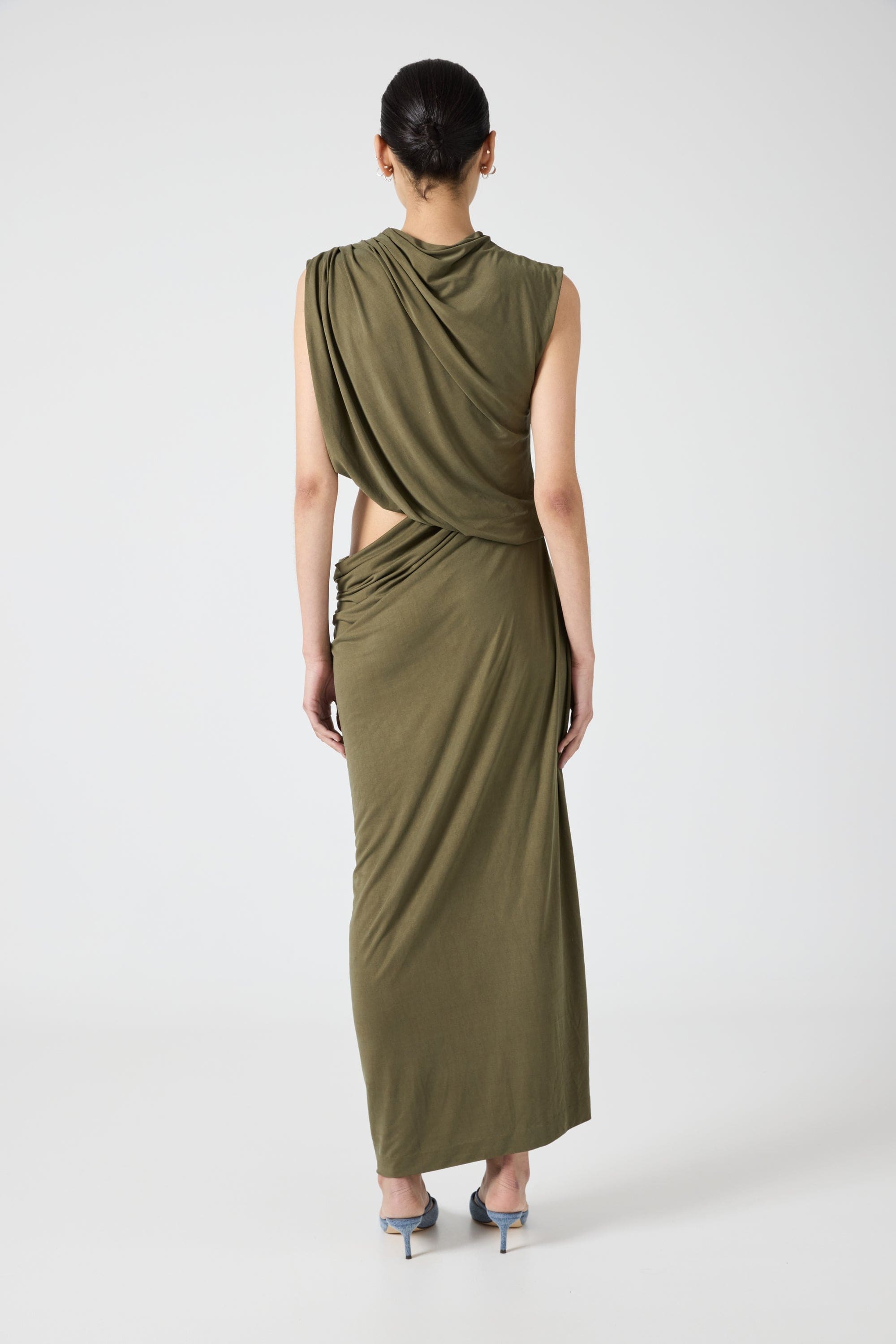 CASCADE CUTOUT JERSEY DRESS | STONE