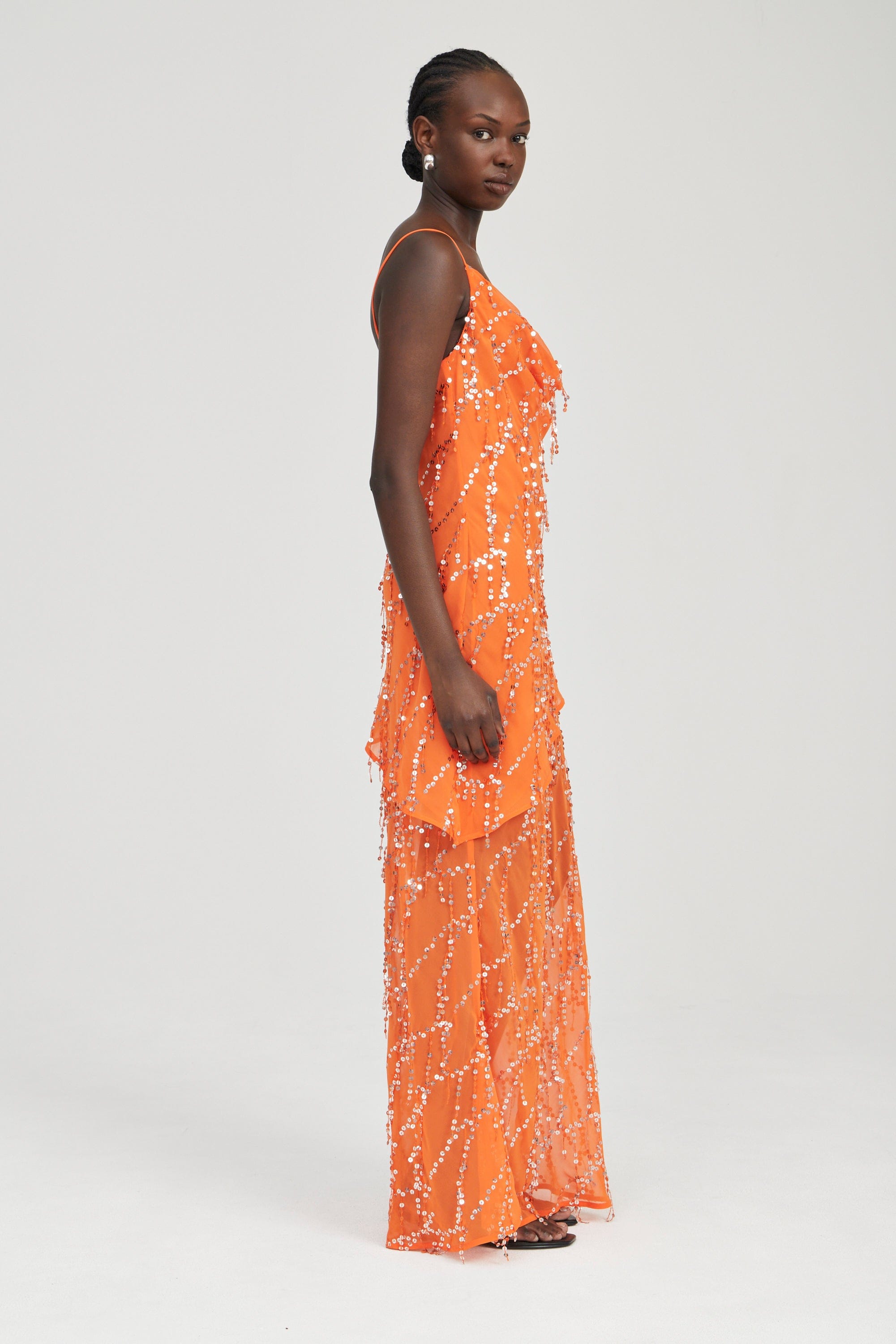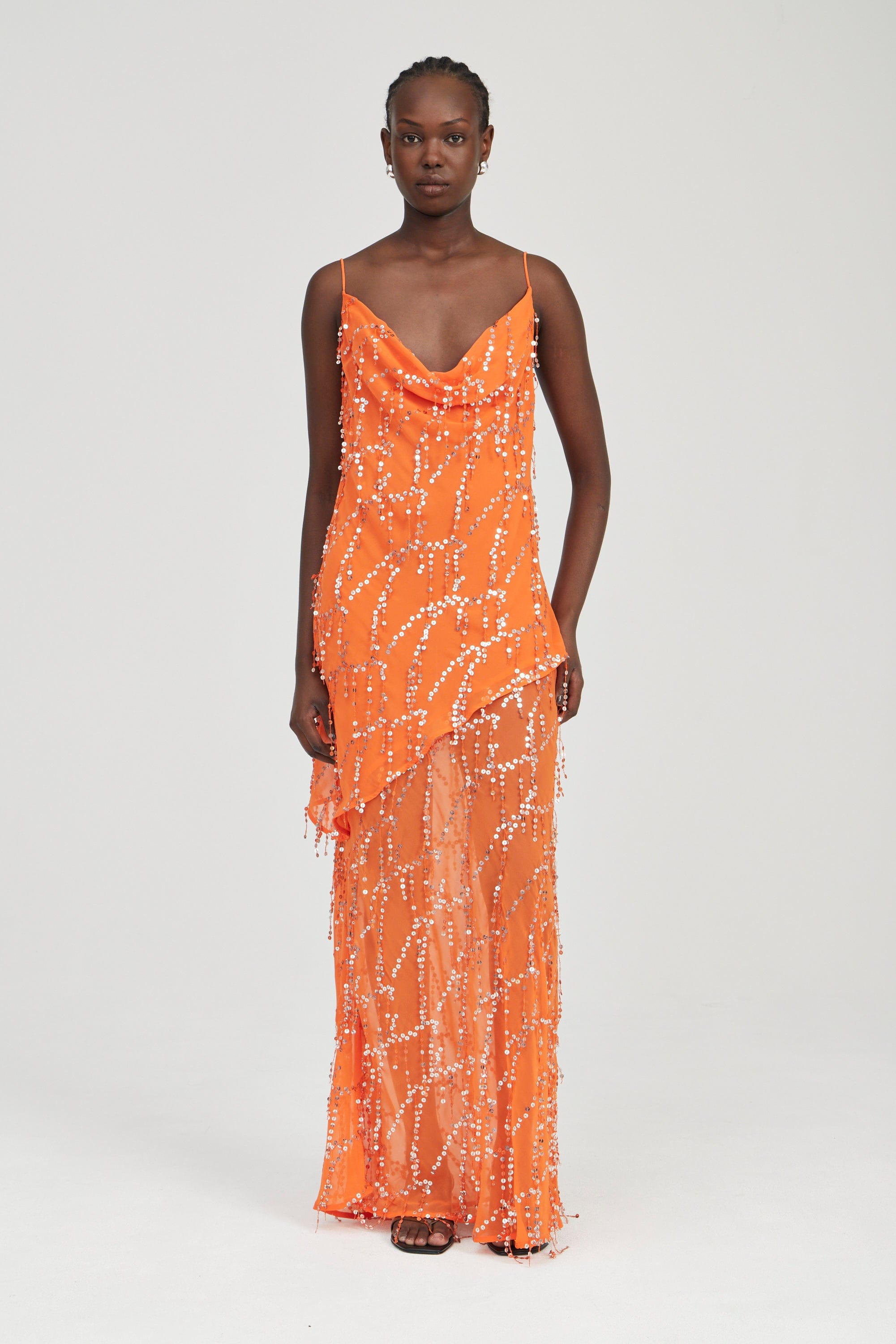 REFRACT BIAS MAXI DRESS | TANGERINE