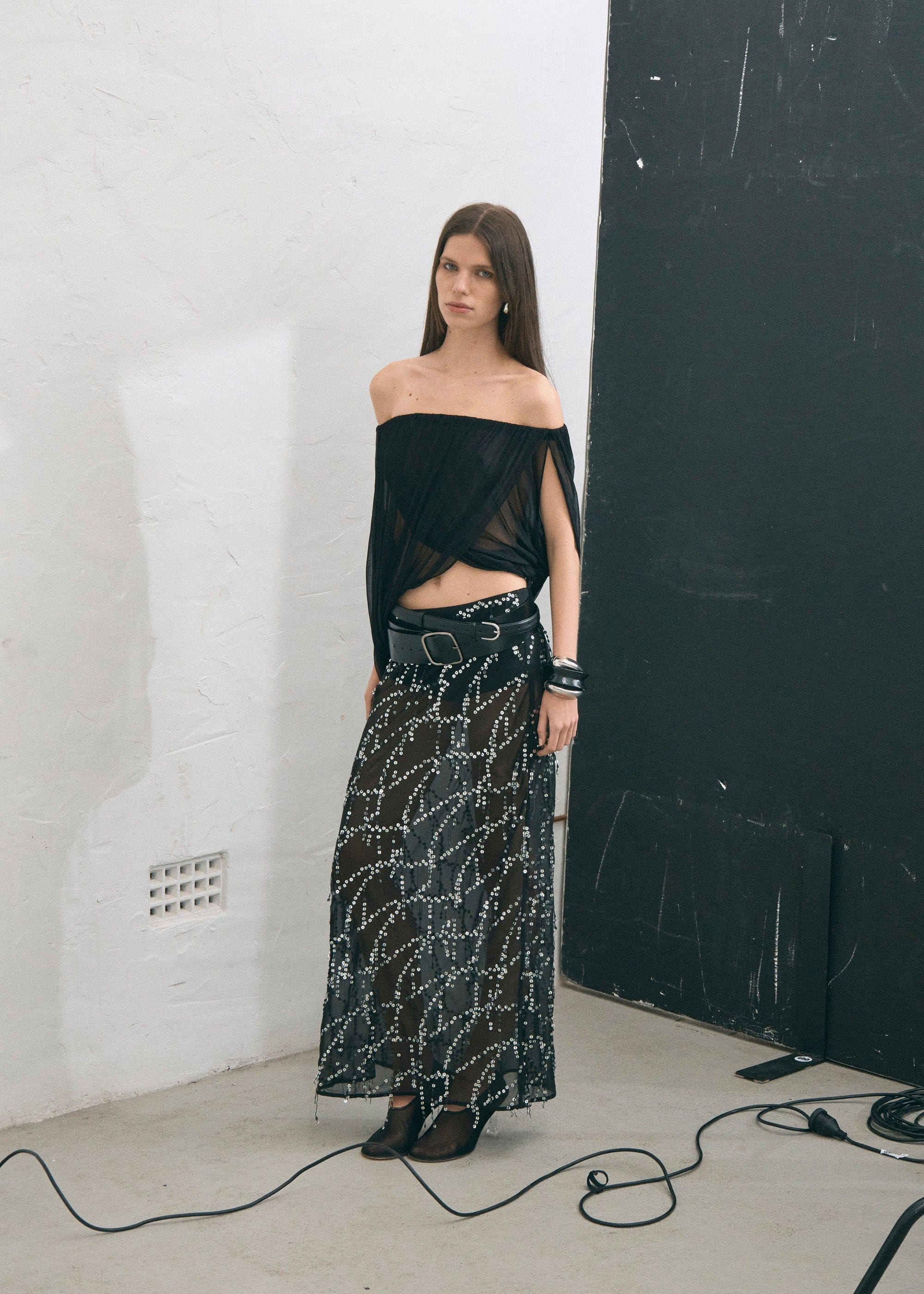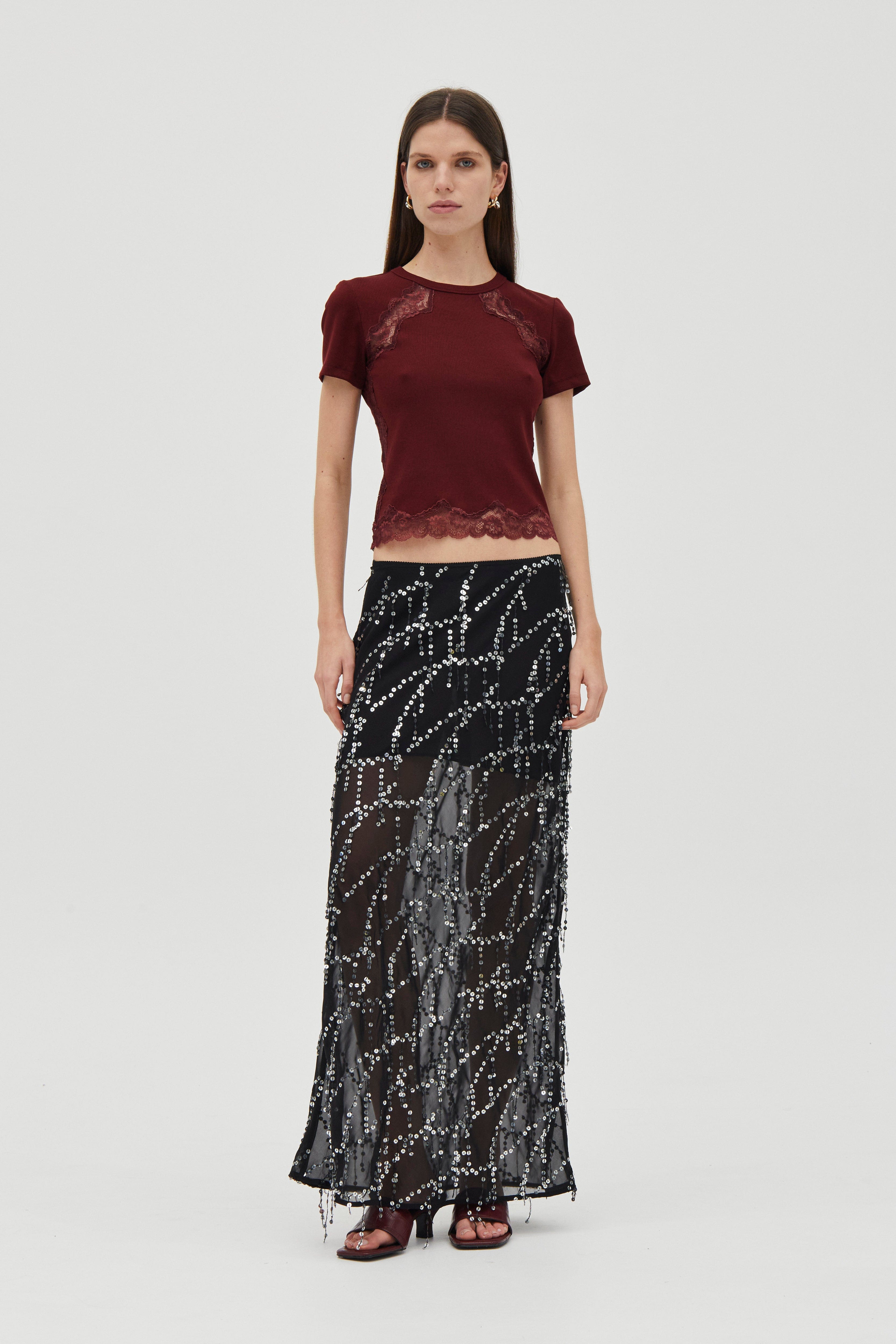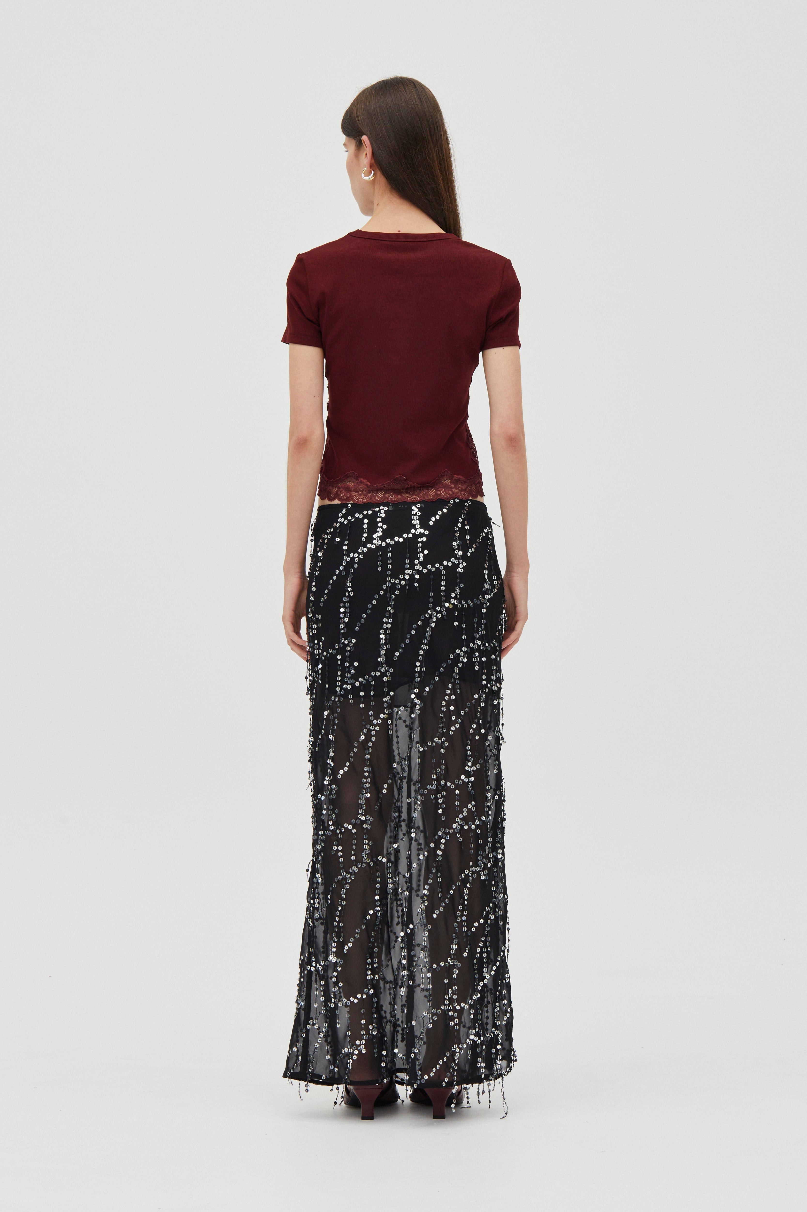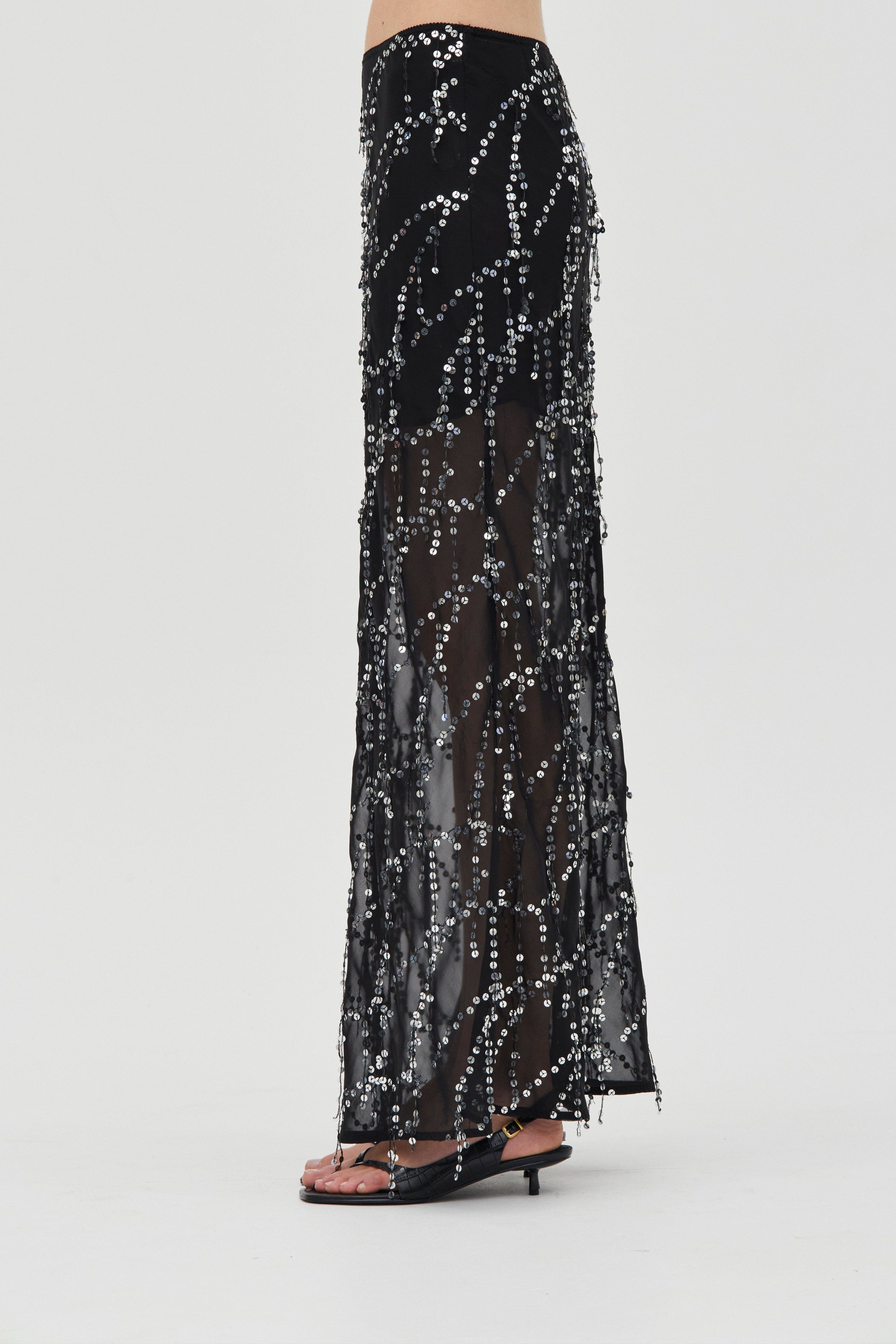 • Sheer base with silver sequin detailing
