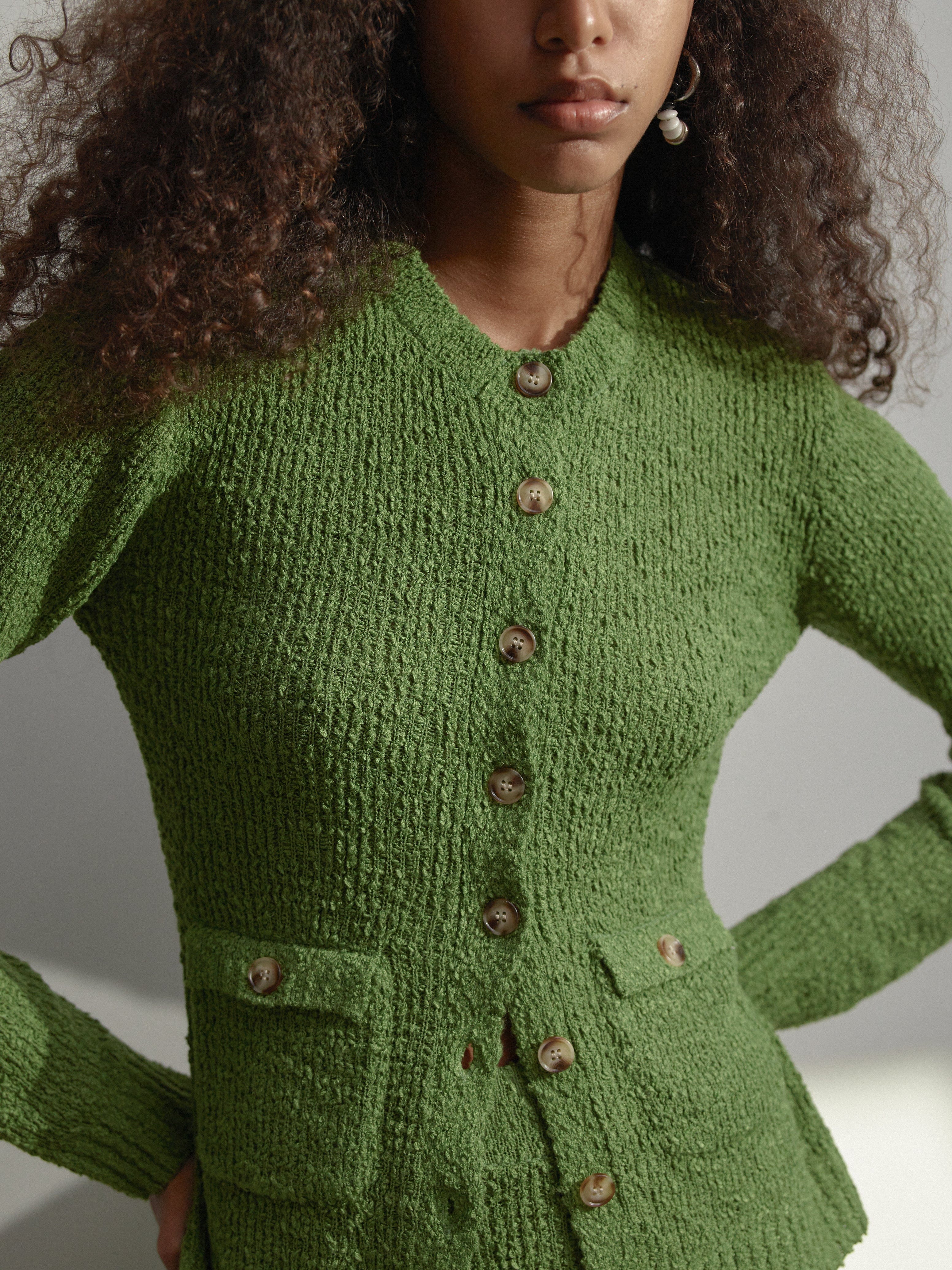 The Wistful Knit Cardigan is a refined take on textural knitwear. Crafted from a soft bouclé blend, it offers a gently tactile finish with subtle slub texture throughout. Designed with a classic crew neckline, it features patch pockets with button closures and a centre-front placket finished with tortoiseshell buttons. Rib detailing at the cuffs and hem adds a layer of texture, making it an elevated layer for everyday wear.